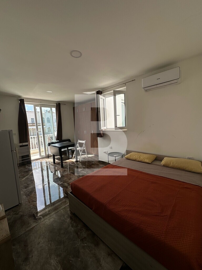 Studio appartment in the heart of St Julians, with just 3 minutes away from the sea! Accomodation comprimises in open plan sitting room/ bedroom leading to a large attractie terrace in the front, fully fitted kitchen/breakfast room, with a spacious double bed upon entrance. Property is air-conditioned and includes a washing machine, lift and television.