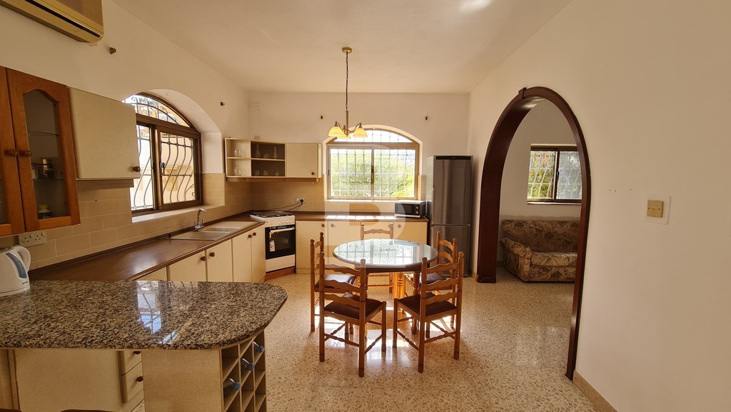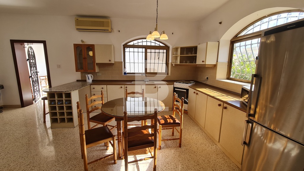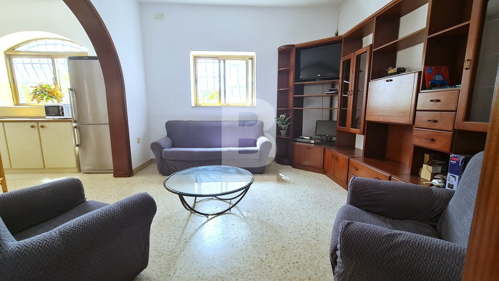 Pembroke. Spacious 4-Bedroom Semi-Detached Villa in a Tranquil Residential Area. This 4-bedroom semi-detached villa offers a comfortable living space across two floors plus a rooftop with distant sea views. Located in a green and peaceful residential area, the property features a front garden and a central yard, adding to its charm. Inside, the villa boasts a partly furnished interior with an open-plan kitchen, dining, and living area, along with a separate sitting room for added space. It includes two bathrooms—one en-suite and another shower room.