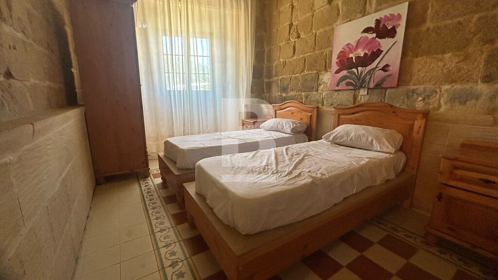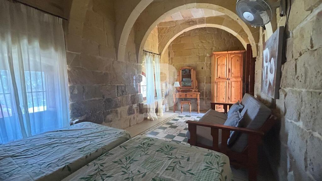 Located in a peaceful area, this charming rustic home offers a blend of old-fashioned character and breathtaking views of the open countryside. As you enter, you are welcomed by a traditional courtyard that leads to two spacious bedrooms and a shared shower room on the ground floor, showcasing the home’s authentic charm. Upstairs, the open-plan kitchen, living, and dining area create a warm and inviting space, with direct access to the outdoor pool and barbecue area—perfect for entertaining or relaxing while enjoying the stunning panoramic views. This level also features three additional bedrooms: one with a double bed and an en-suite shower room, while the other two have twin beds and share a separate bathroom.