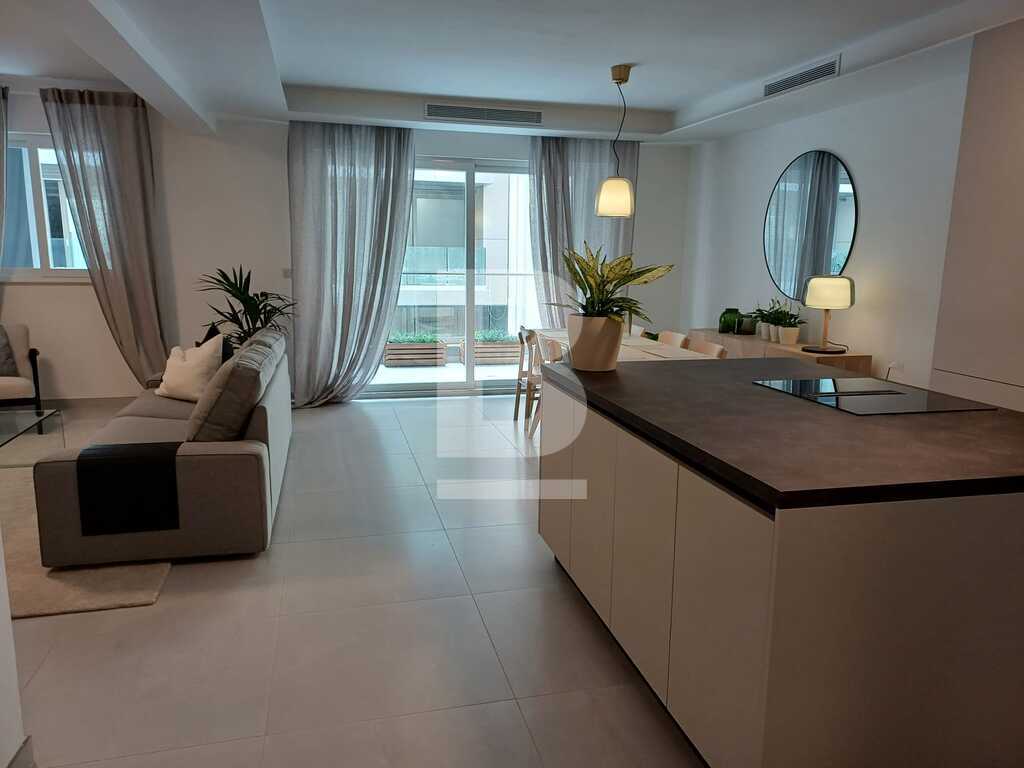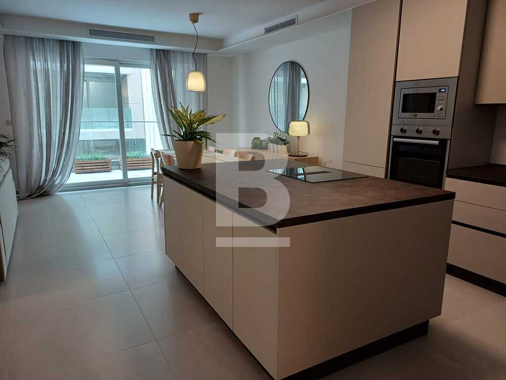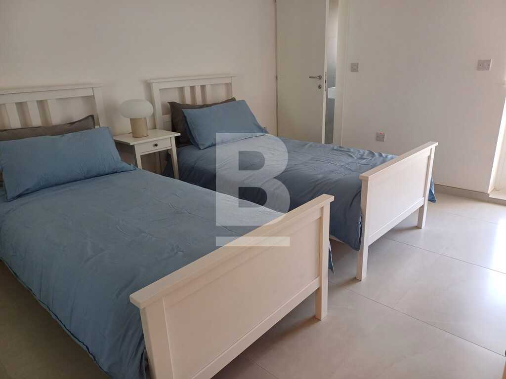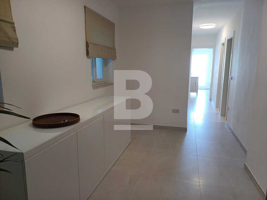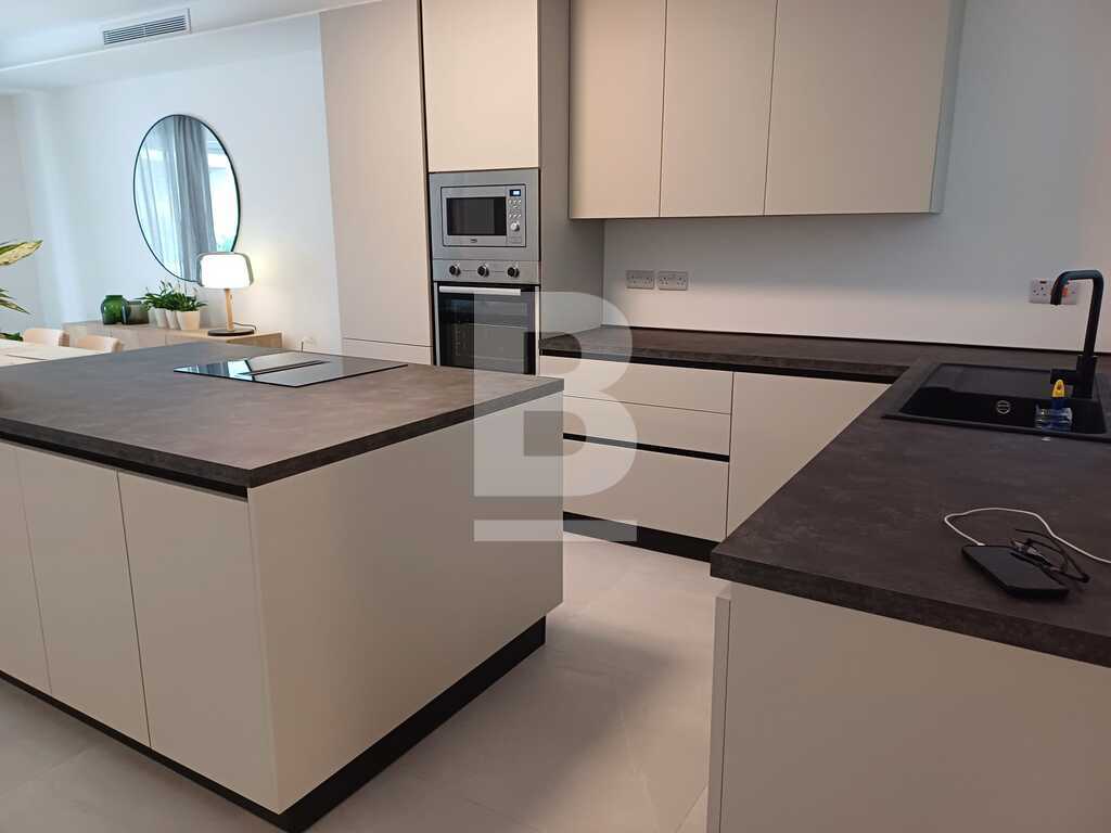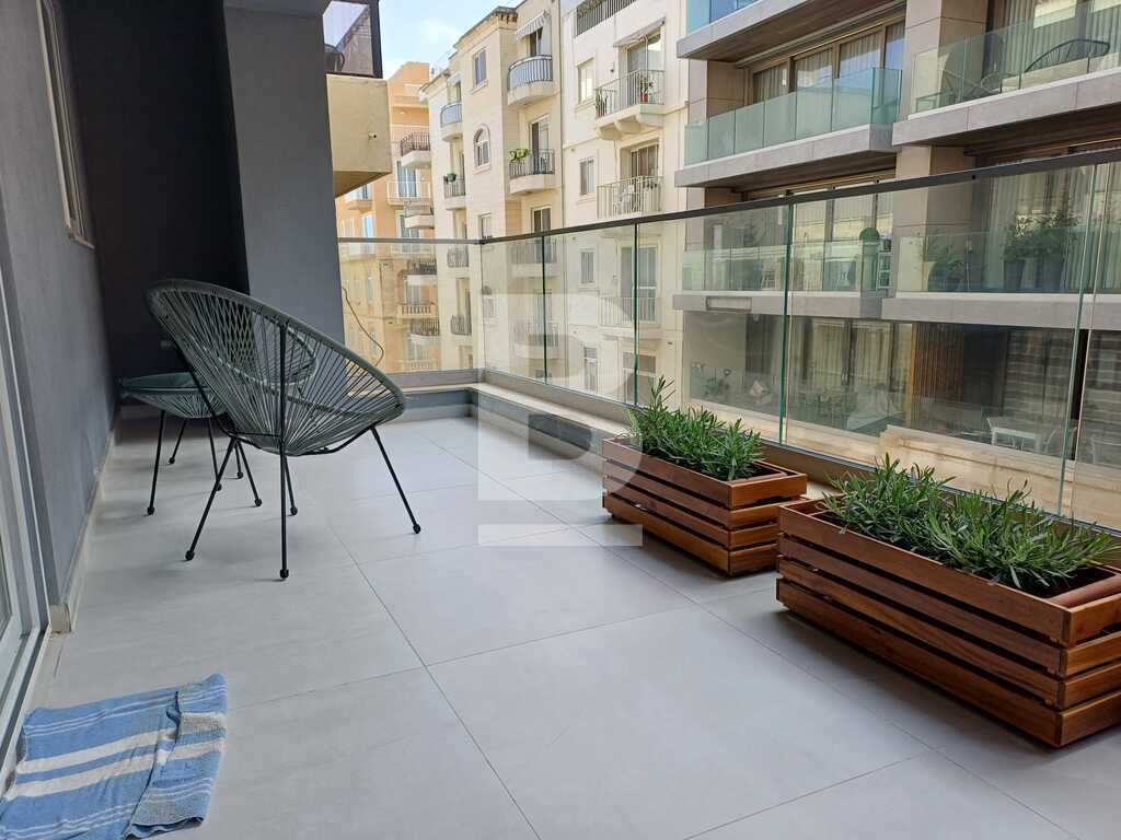 This modern and stylish apartment is bright and beautifully designed, offering a comfortable living space in the prime location of Sliema, just a few meters from the seafront. Upon entering, you'll find a welcoming hallway leading into an open-plan kitchen, living, and dining area that flows seamlessly onto a large terrace, complete with outdoor furniture and side seaviews, perfect for relaxing or entertaining. The apartment features three bedrooms (2 doubles and 1 twin) one of which benefits from en-suite facilities. There is also a guest bathroom, a convenient guest shower, and a back balcony, adding to the apartment's appeal and functionality.