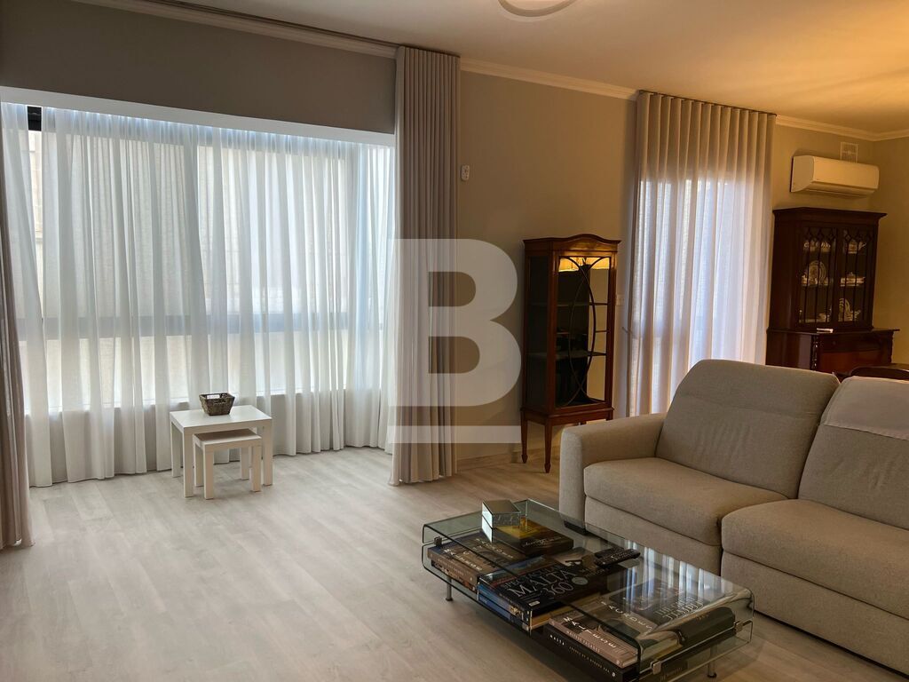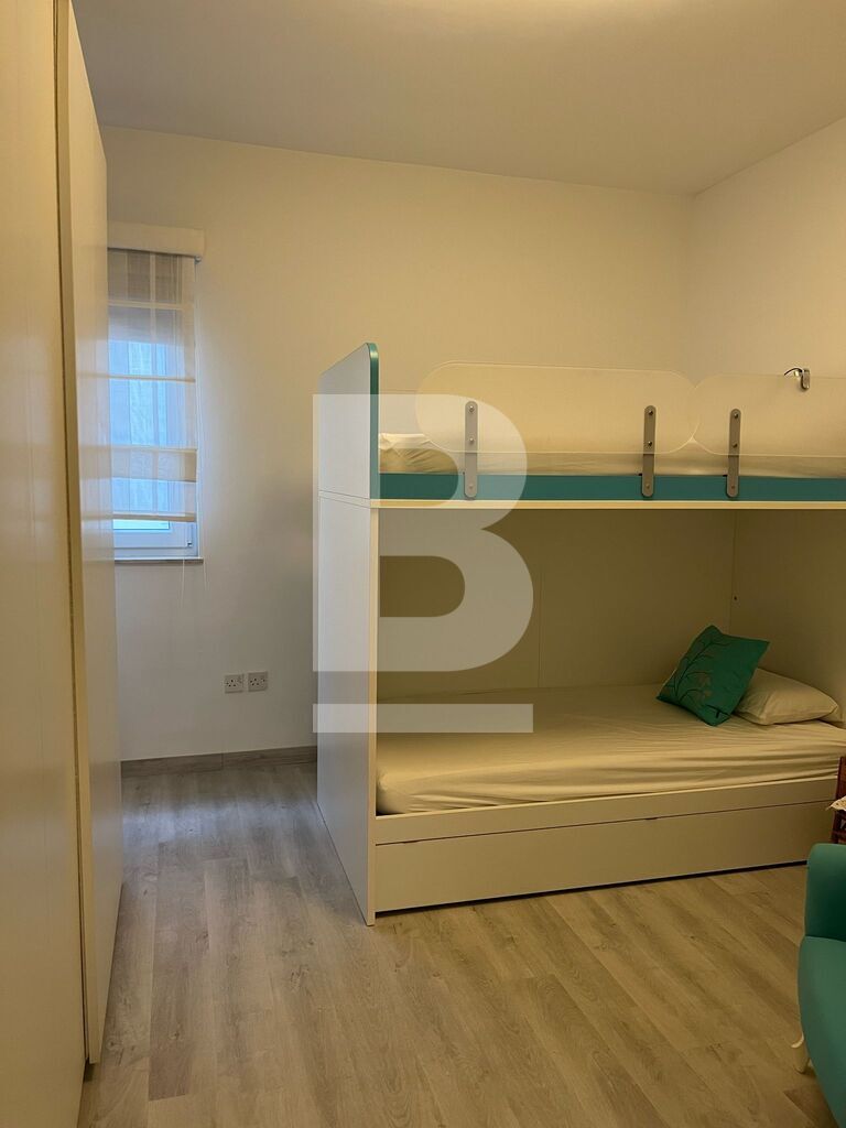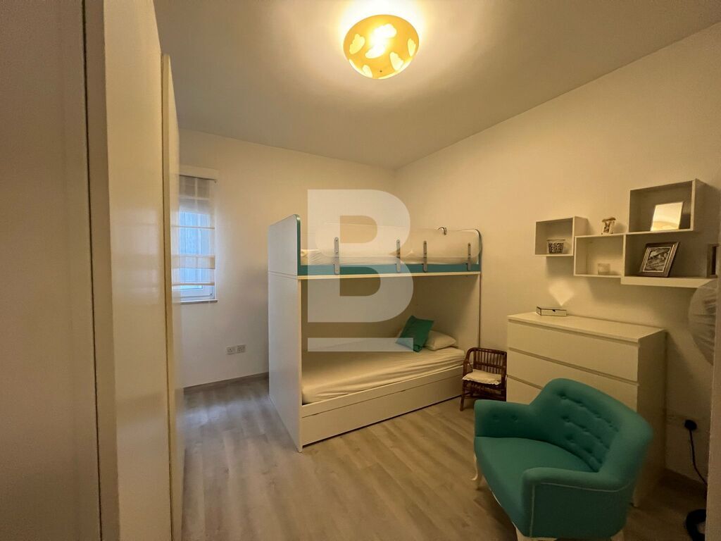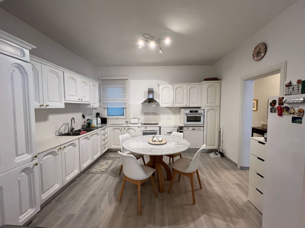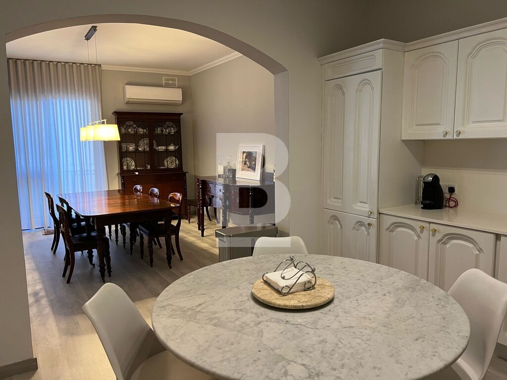 Thrid floor APARTMENT in Sliema, minutes away from the promenade. The property features an open-plan kitchen, living, and dining area, leading onto a front balcony with side sea views. It comprises three double bedrooms, the main bedroom with an en-suite shower room, a main bathroom, and a utility room.