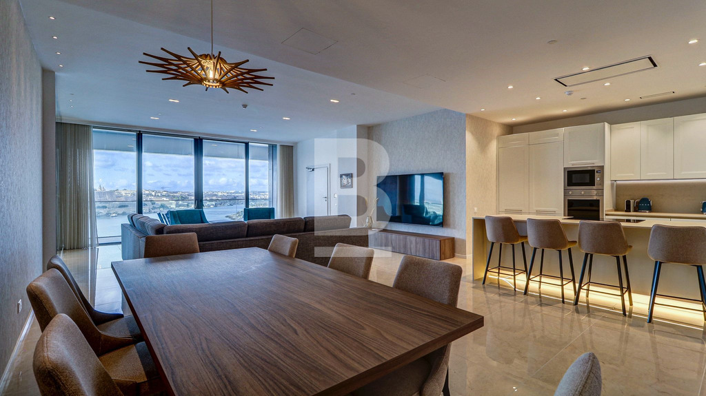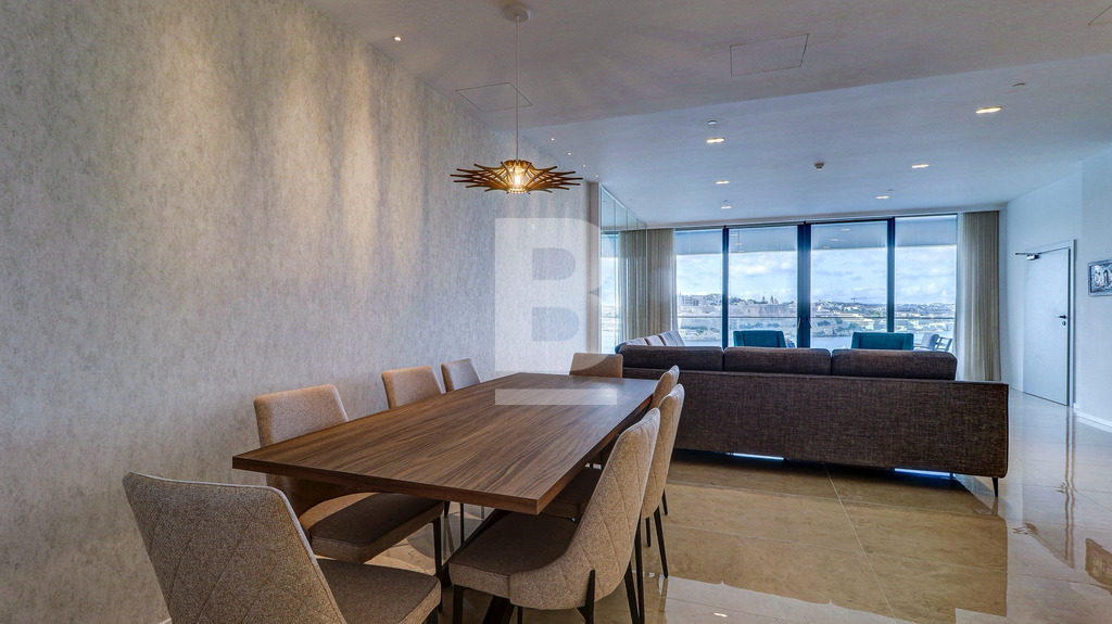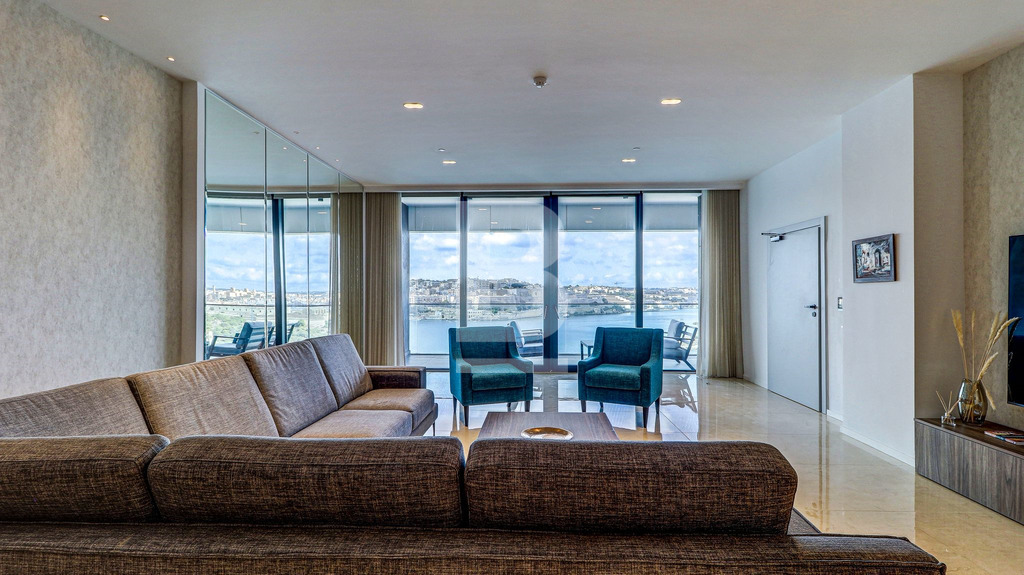 A three-bedroomed Seafront haven consisting of an open plan living and dining area with a modern kitchen and a large south-facing balcony furnished with a double sunbed and dining table and chairs, the full height panoramic doors allows natural light and warmth to pour inside, whilst presenting a breathtaking view of Valletta, three bedrooms all with en-suite bathrooms, 2 of which also have balconies furnished with armchairs and a coffee table, a laundry room and a guest toilet. This apartment includes underfloor heating in the bathrooms, is fully air-conditioned/heated and includes all modern day conveniences. This property comes with use of on-site fitness centre, spa and pool facilities and one may also benefit from other specialised concierge services, range of eateries and a lido all available at special rates. There are variety of shopping outlets and cafés around the area, residents of this Luxury Living Complex will never be at a loss for things to do and enjoy. The complex also comes with 24h reception or security services, providing peace of mind where it matters most. Should one wish, housekeeping services may be arranged quickly and easily, with qualified and trustworthy cleaners. Residents will also benefit from the unique advantage of the bustling Sliema commercial centre right outside their door - with a variety of high street shops, quaint cafes and bars, renowned restaurants, and endless leisure.