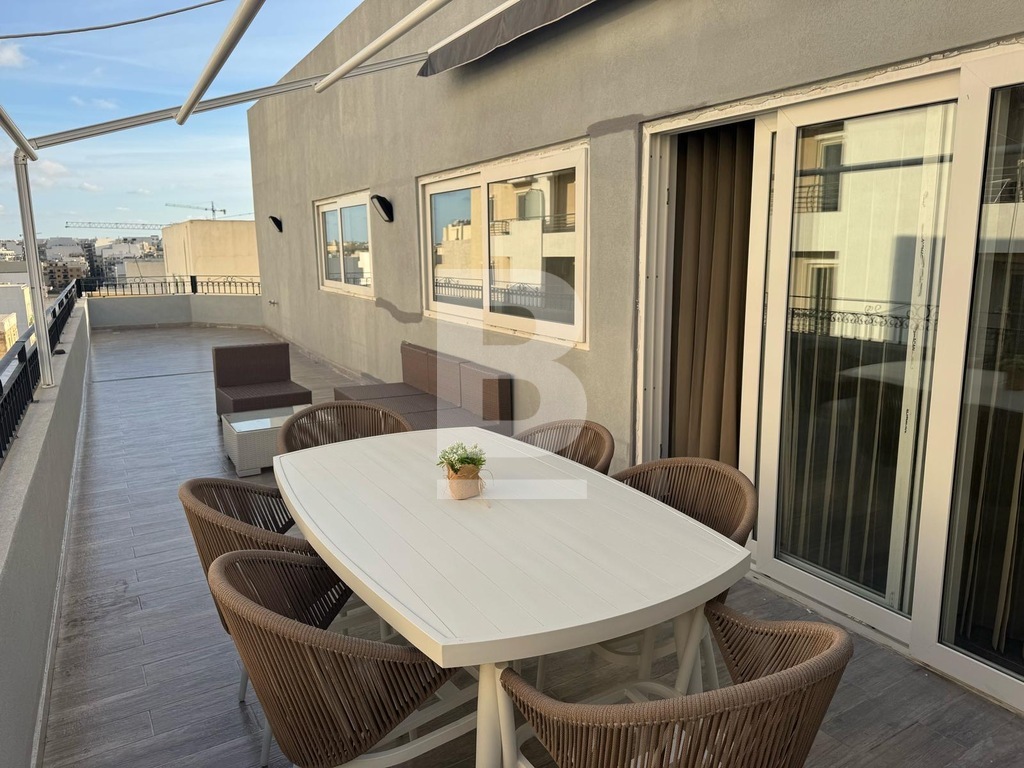 Highly finished and furnished PENTHOUSE, Served with a lift. Forming part of a smart block in Gzira. Within walking distance to most amenities and the promenade. Property comprises an open plan fully equipped kitchen/ living/ dining area leading out onto a huge terrace, perfect for entertaining. Two double bedrooms, both having en-suites and main bathroom.