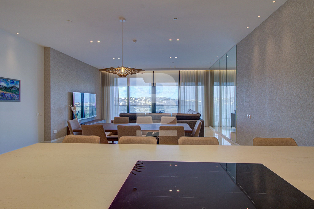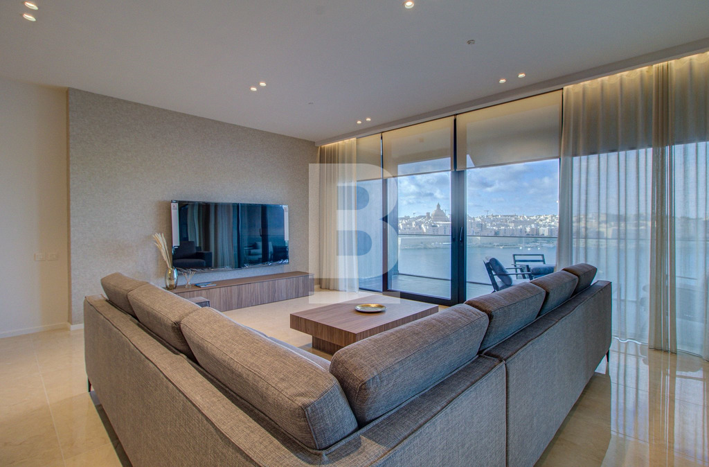 This spacious one-bedroom seafront apartment consists of a large open-plan kitchen, living and dining, with full-height panoramic doors overlooking the plaza and open Mediterranean Sea area and a good-sized balcony furnished with two armchairs and a coffee table, one large main bedroom and a bathroom.  This apartment includes underfloor heating in the bathroom, is fully air-conditioned/heated and includes all modern-day conveniences.  This property comes with use of on-site fitness centre, spa and pool facilities and one may also benefit from other specialised concierge services, range of eateries and a lido all available at special rates.  There are variety of shopping outlets and cafés around the area, residents of this Luxury Living Complex will never be at a loss for things to do and enjoy. The complex also comes with 24h reception or security services, providing peace of mind where it matters most. Should one wish, housekeeping services may be arranged quickly and easily, with qualified and trustworthy cleaners. Residents will also benefit from the unique advantage of the bustling Sliema commercial centre right outside their door - with a variety of high street shops, quaint cafes and bars, renowned restaurants, and endless leisure.