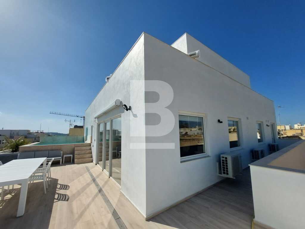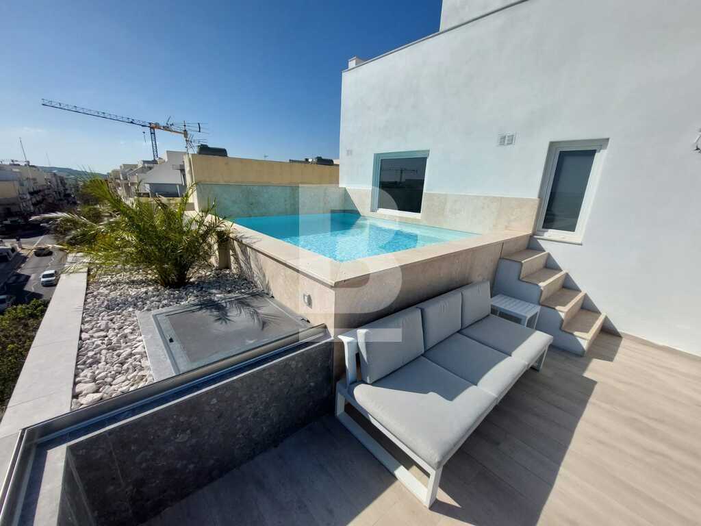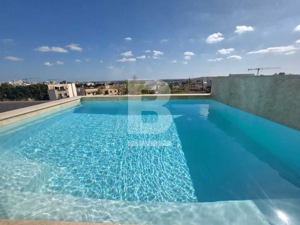 Brand new and modern penthouse situated on the 4th floor of a new building in the heart of Naxxar. Property consists of 3 double bedrooms, 2 bathrooms, open-plan kitchen/living/dining, laundry and a massive terrace with pool enjoying open views and privacy. Centrally located right next to bus stop, pharmacy, post office, grocery shops, cafeterias, restaurants and many other ameneties.Optional car parking at basement level available.