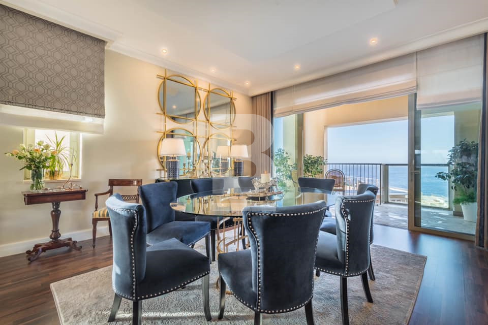 New on the market, is this elegant, stunning and luxurious seventh floor apartment situated in this unique lifestyle development with 24 hour security offering a car free environment, Malta's largest shopping mall, communal swimming pool and many other benefits. The apartment has just been finished and furnished to the highest of standards having an area of circa 177sqm. Property comprises of an entrance hall leading onto an open plan 70sqm fully fitted kitchen/living/dining enjoying views of Valletta, 2 spacious bedrooms with main enjoying en-suite facilities with rain shower, extensive wardrobes and abundance of natural light, second bedroom with open views, family bathroom, utility room and cloak room. The property is being sold fully furnished including Italian kitchen with corain top, bespoke fitted furniture, suspended ceilings, intelligent lighting, Italian marble, Porcelanosa bathrooms, motorized Roman blinds, designer blackout curtains and much more. Included in the price is a 1 car space and also offers an optional 2 car lock up garage..