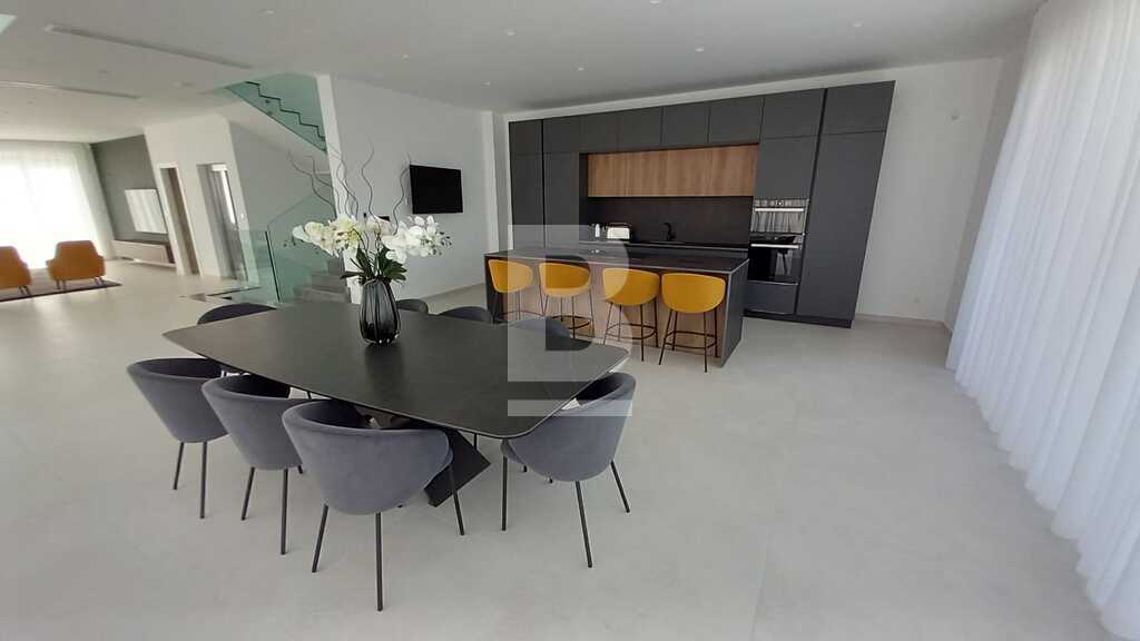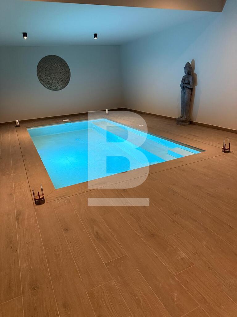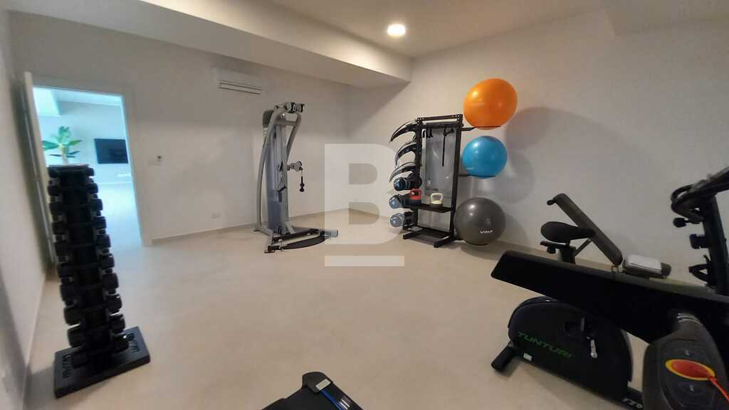 Stunning Semi-Detached Villa, located in one of the most prestigious areas, spread on 3 floors this property offers comfort style and quality. At basement level (lvl-1) the property includes a large garage, 1 bedroom, 1 bathrooms, kitchen/living/dining, games room and a gym. On the ground floor level the property includes a fully fitted kitchen, a living room and dining area.The large outdoor area includes a large pool with a seating area with a sofa and dining table . The first floor level accommodates 4 large double bedrooms all with en-suite bathrooms with an option for a 5th bedroom. Property also enjoys a heated indoor pool, jacuzzi and sauna.This property has been completed to very high standards and no expense has been spared and has an abundance of light both from the large windows and skylight.