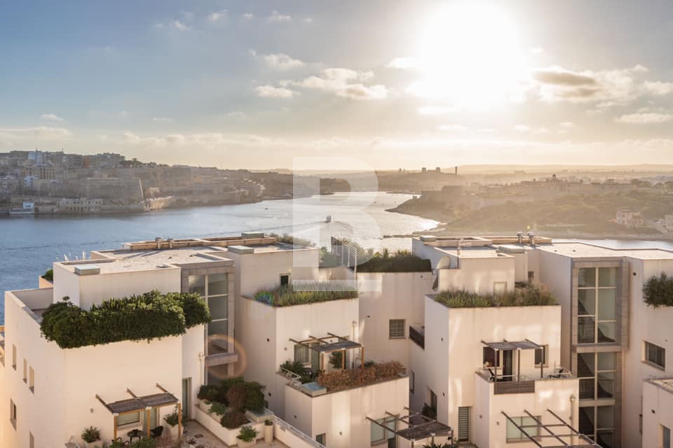 New on the market, is this elegant, stunning and luxurious seventh floor apartment situated in this unique lifestyle development with 24 hour security offering a car free environment, Malta's largest shopping mall, communal swimming pool and many other benefits. The apartment has just been finished and furnished to the highest of standards having an area of circa 177sqm. Property comprises of an entrance hall leading onto an open plan 70sqm fully fitted kitchen/living/dining enjoying views of Valletta, 2 spacious bedrooms with main enjoying en-suite facilities with rain shower, extensive wardrobes and abundance of natural light, second bedroom with open views, family bathroom, utility room and cloak room. The property is being sold fully furnished including Italian kitchen with corain top, bespoke fitted furniture, suspended ceilings, intelligent lighting, Italian marble, Porcelanosa bathrooms, motorized Roman blinds, designer blackout curtains and much more. A 2 car lock up garage is available.