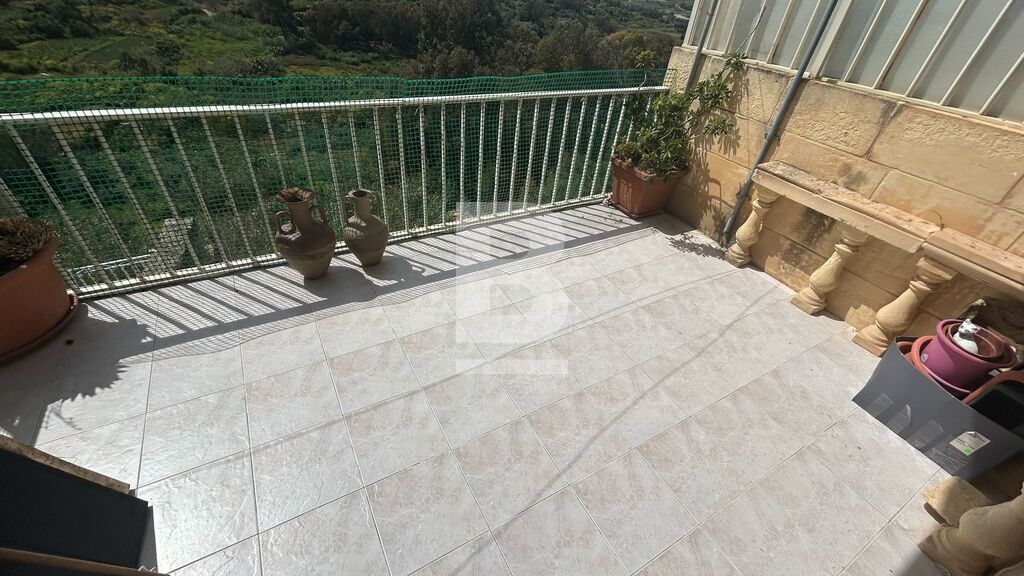 Located in a prime position in Xaghra, this second-floor apartment enjoys stunning valley and sea views. The layout includes a combined kitchen, living and dining area opening onto a spacious back terrace with breathtaking vistas, a main double bedroom with en suite and front-facing balcony, a single second bedroom and a main bathroom. Part of a three-storey block, the property also benefits from part ownership of the roof, adding extra value and potential. A perfect choice for those seeking a scenic and well-located home in Gozo.