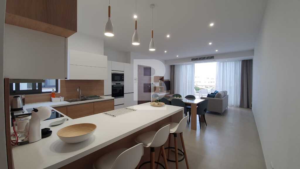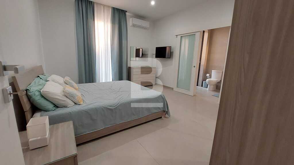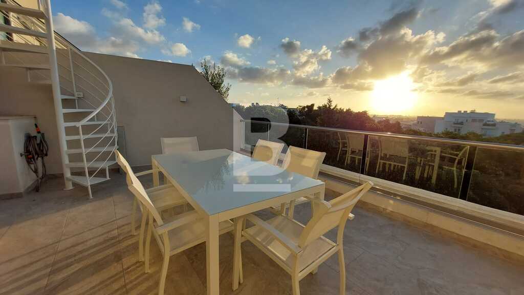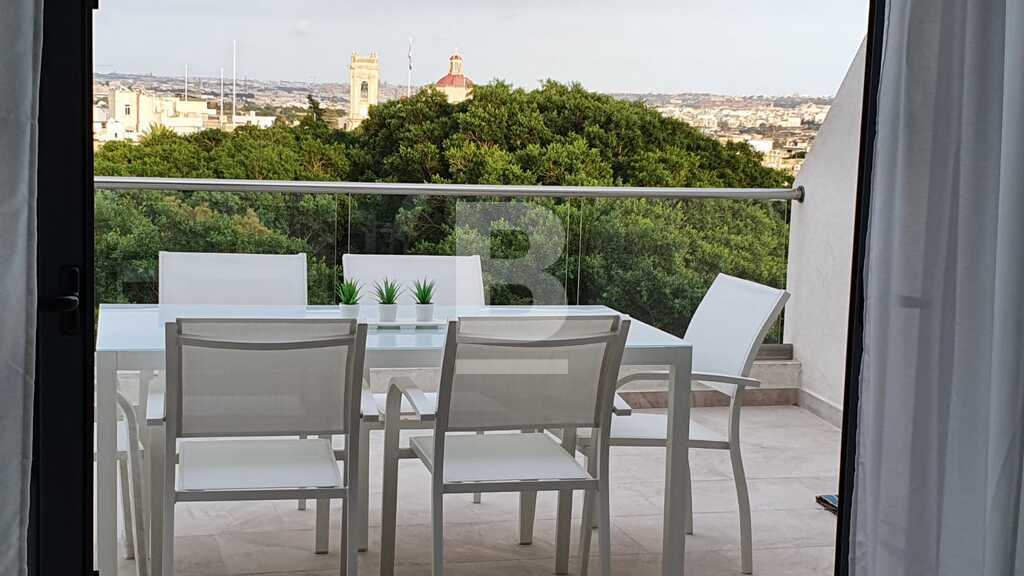Finished and furnished, fully air-conditioned PENTHOUSE in Attard, comprising a large open plan kitchen, living and dining area with a spacious front terrace overlooking a garden, two double bedrooms - master with an en-suite shower and balcony and main shower. This highly finished property has washing machine, dryer, dishwasher and a lock up garage included in the rental price.