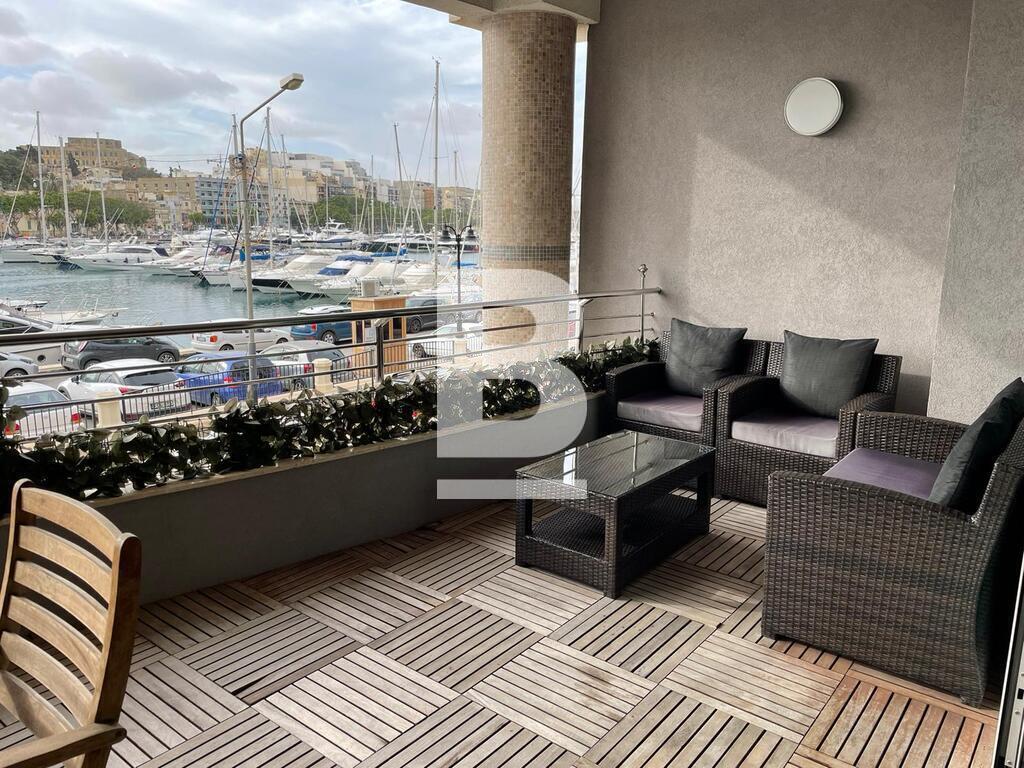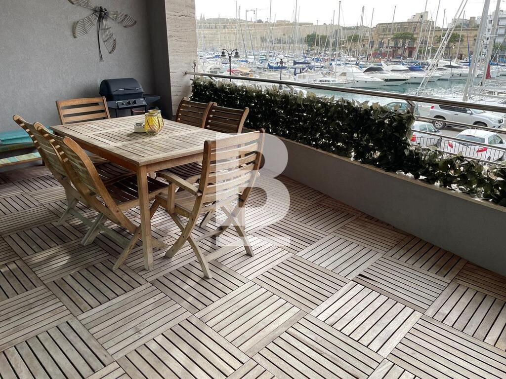 Spacious Seafront Apartment in Prestigious Marina Development of approximately 185 sqm, located in an elite residential block on the marina seafront. This beautifully finished two-bedroom residence offers high-quality specifications throughout and boasts breathtaking views of the marina and the historic city of Valletta from its sun-drenched veranda. The property features a bright and open layout, perfect for both comfortable living and entertaining. Available of a two-car garage at additional €250.