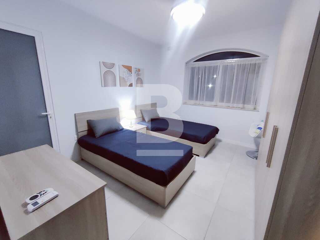 MARSASCALA - A100 sqm ground floor Maisonette enjoying seaviews, situated in a Complex with communial surrounding gardens and Swimming pool - just 3 minutes walk from the Promenade. Property offers three bedrooms, all with an en-suite, and a large kitchen/ dining and sitting room with a veranda overlooking the garden and seaviews.