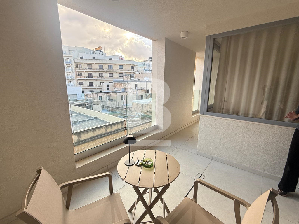 Brand New, fully furnished 3rd floor 3-bedroom apartment located just off the SLIEMA SEAFRONT with optional underlying car space. It is part of a stunning CORNER block proudly bearing the original townhouses' facade and large, elegant common areas. Facing scheduled townhouses, the apartment is flooded with natural light, it comprises an open plan living/dining/kitchen with a front terrace, 3 double bedrooms 2 leading out to a loggia/terrace, en-suite, and a bathroom. Highly recommended for those seeking a prestigious address literally a few seconds away from the sea.