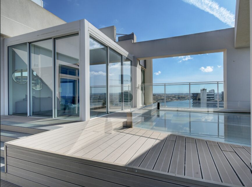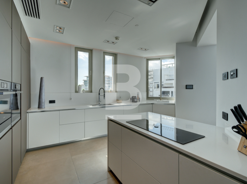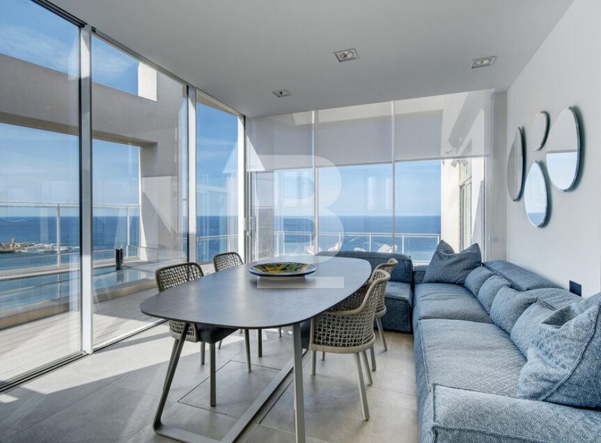 This exceptional seafront penthouse is part of a premier lifestyle development, designed by one of the island’s most renowned architectural and design firms. Offering a seamless blend of natural light, functionality, elegance, and refined taste, this home caters to even the most discerning buyers. Boasting stunning sea views, the property features a spacious, open plan living area that flows effortlessly onto a large terrace with a private pool. The designer kitchen and dining area can be fully opened, creating the ideal setting for al fresco dining and entertaining.