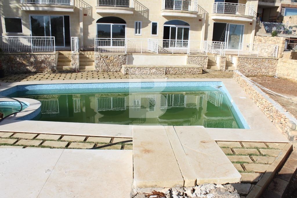 Located on the 3rd floor with lift access in a quiet, scenic area, this spacious 3 bedroom, 2 bathroom apartment offers unobstructed views and a peaceful island lifestyle in Sannat. The property includes access to a communal pool and jacuzzi, as well as an interconnected lock-up garage included in the price. Featuring basic finishes such as doors, windows and railings, this apartment is ready for personal touches to make it your own. A wonderful opportunity for those seeking modern comfort and tranquility in the heart of Gozo.