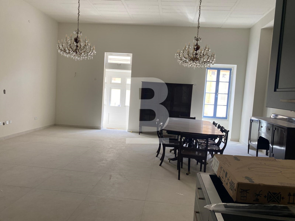Brand New, fully furnished 1st floor 3-bedroom apartment located just off the SLIEMA SEAFRONT with optional underlying car space. It is part of a stunning CORNER block proudly bearing the original townhouses' facade and large, elegant common areas. Facing scheduled townhouses, the apartment is flooded with natural light, it comprises an open plan living/dining/kitchen having quasi 3 meter high ceilings and a Maltese balcony, 3 double bedrooms 2 leading out to a loggia/terrace, en-suite, and a bathroom. The property is decorated in a beautiful mix of traditional with contempory. Highly recommended for those seeking a prestigious address literally a few seconds away from the sea