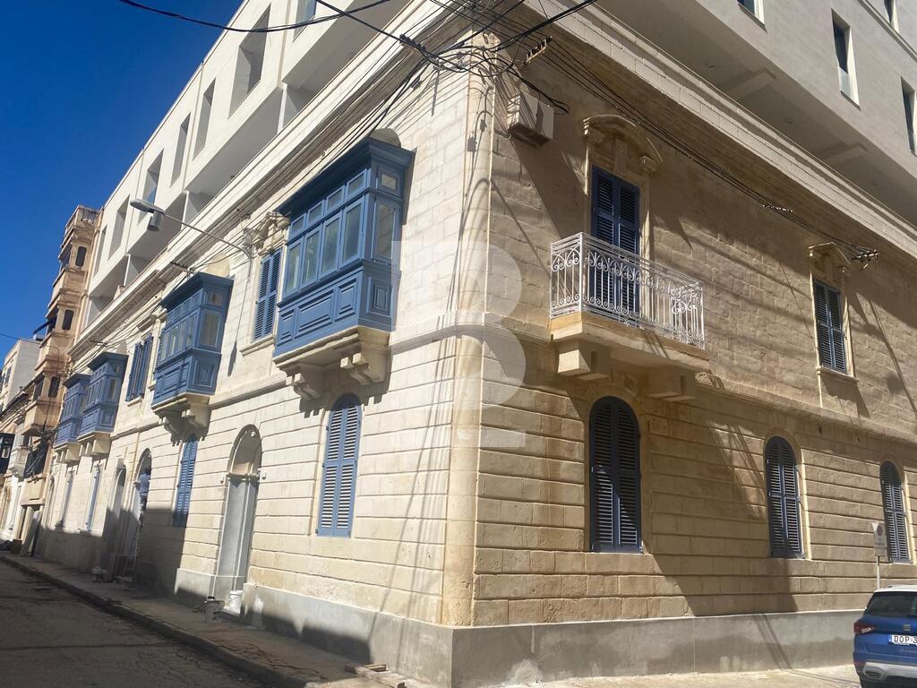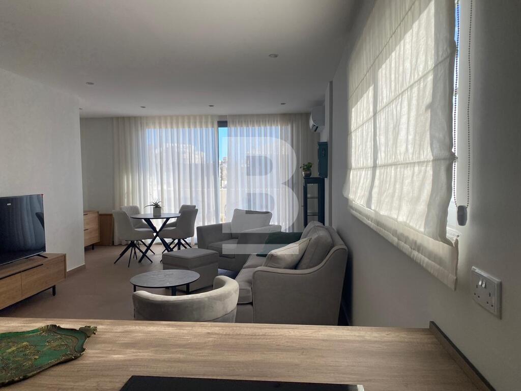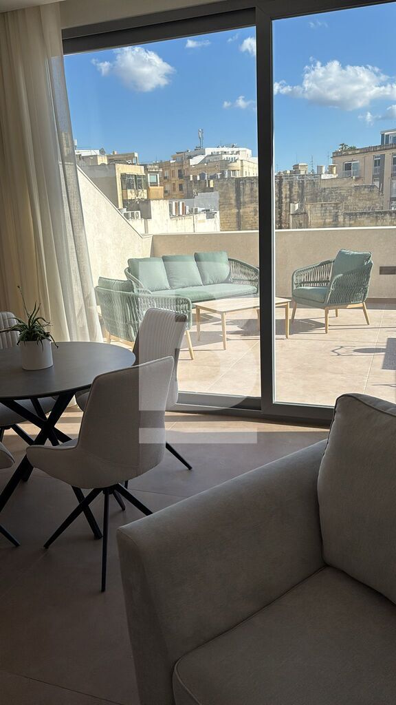 Brand New, fully furnished 4th floor 2-bedroom Penthouse-Apartment with a huge terrace located just off the SLIEMA SEAFRONT with optional underlying car space. It is part of a stunning CORNER block proudly bearing the original townhouses' facade and large, elegant common areas. Facing scheduled townhouses, the property is flooded with natural light, it comprises an open plan living/dining/kitchen with a huge front terrace, 2 double bedrooms both leading out to a loggia/terrace, en-suite, and a bathroom. Highly recommended for those seeking a prestigious address literally a few seconds away from the sea.