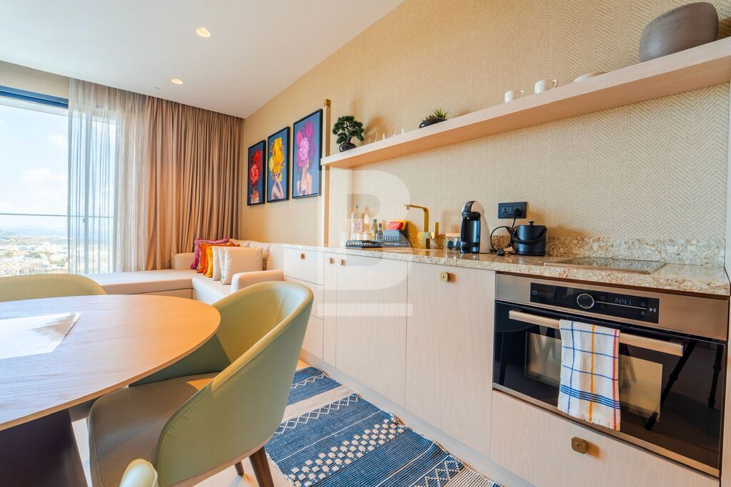 A unique opportunity to reside in the Exclusive development of Mercury Towers. A brand new apartment finished to high specifications, and comprising of a welcoming open plan layout kitchen, living area, one double bedroom and one bathroom. A good size balcony overlooking the Piazza, the perfect setup to enjoy live activities being held at Mercury tower.