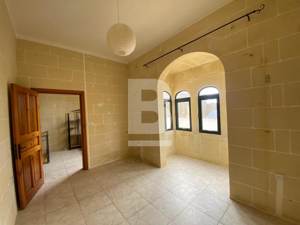This partly furnished terraced house in the picturesque village of Gharb offers space, character and good potential. The first floor includes a 2 car garage, a kitchen/dining area that opens onto a spacious yard, perfect for family gatherings or outdoor relaxation, a separate lounge and a large bathroom. On the second floor, you’ll find 3 bedrooms, one with an ensuite, along with a full-sized main bathroom and a charming stone balcony. The top floor features a versatile room that opens onto a large terrace with beautiful countryside views. Bright, airy, and conveniently close to all amenities, this property is ideal for comfortable living with plenty of room to grow.