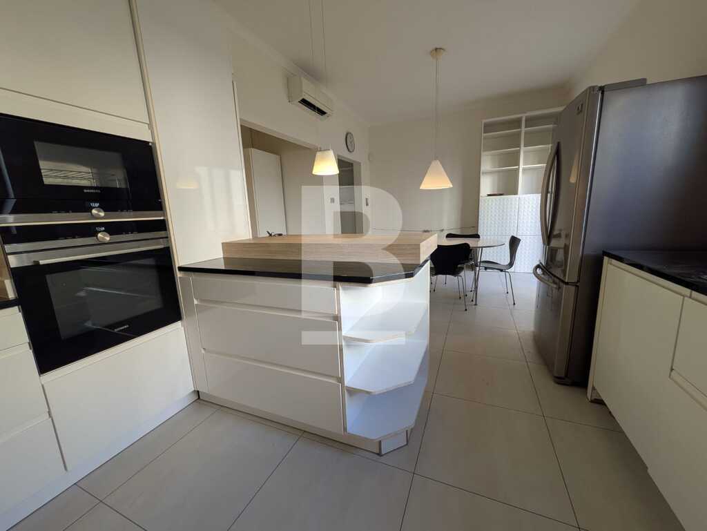 A beautifully designed terraced house located in a charming and highly sought-after village, this exceptional home enjoys views over a peaceful park and is just a short walk from both the sea and the countryside. Bright and incredibly spacious, the property features a generous roof terrace and a large backyard—ideal for outdoor dining, entertaining, and relaxing in style. Upon entering, you're welcomed by a wide entrance hall leading to a large living area complete with a functional wooden stove. A separate kitchen and dining area open onto the well-sized backyard, which is equipped with a BBQ and outdoor furniture. Upstairs, the first floor offers four bedrooms, including a master with an en-suite bathroom, a second living area, and a charming library. The top level includes a fully equipped second kitchen, a spare bedroom with its own en-suite bathroom, and a private office.