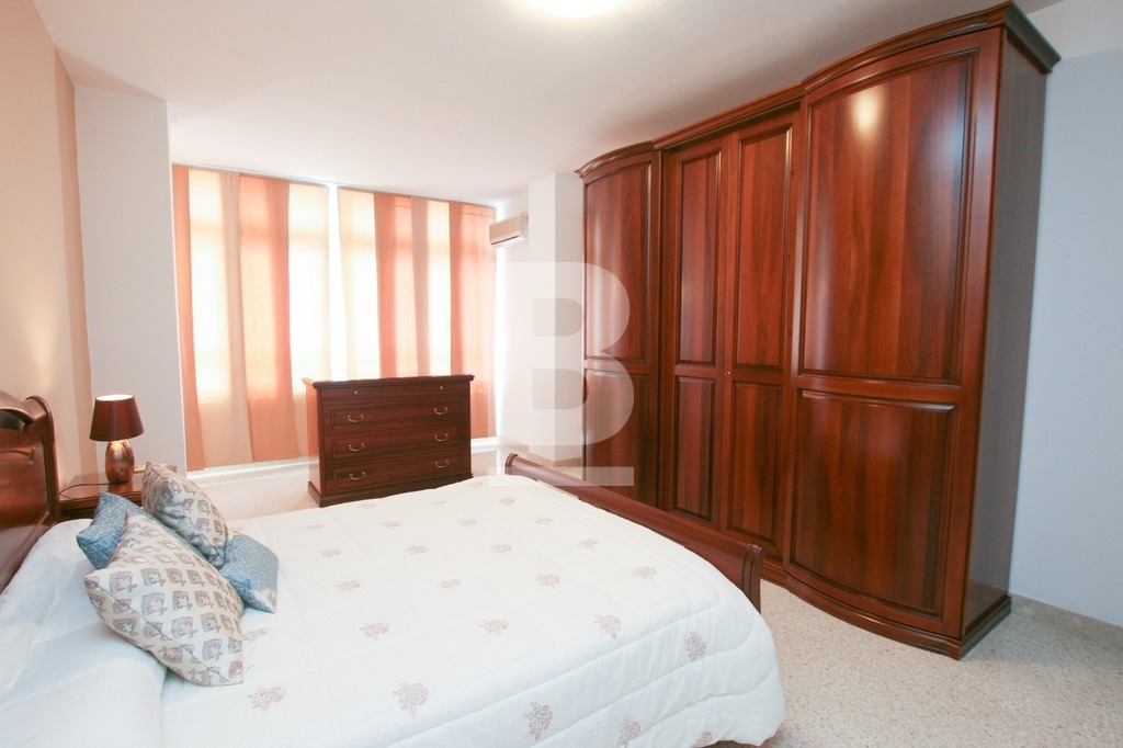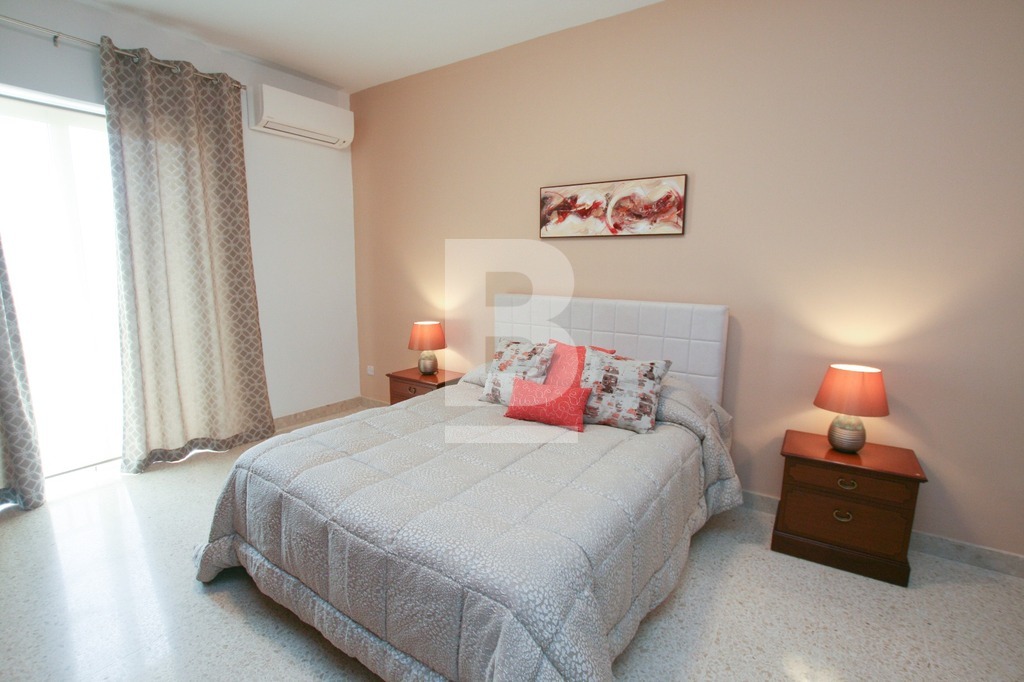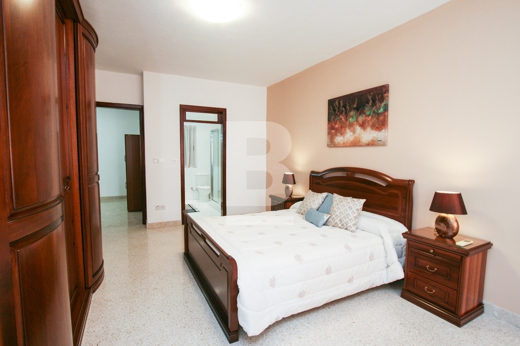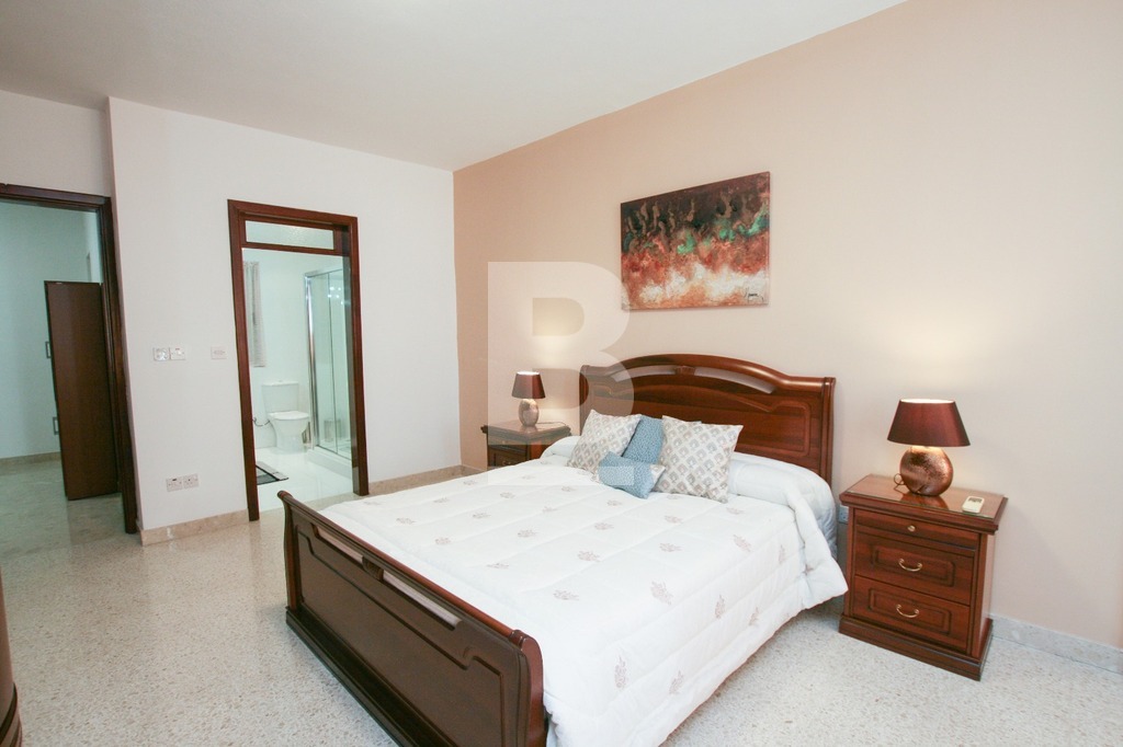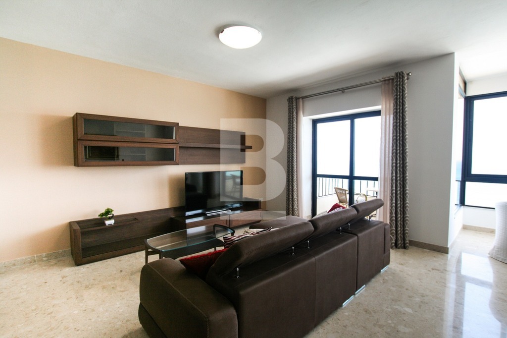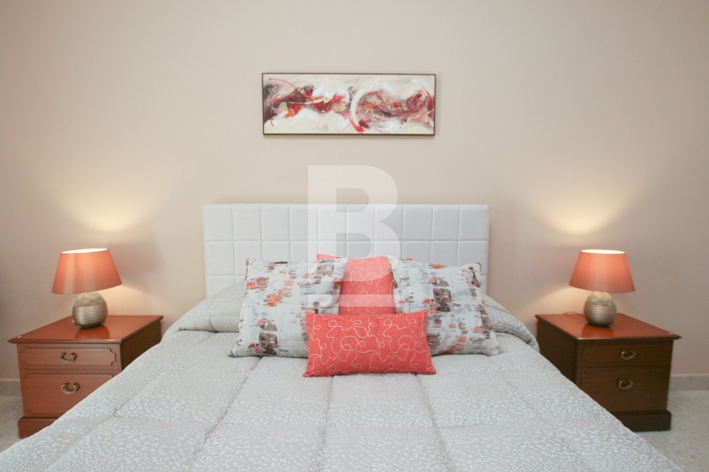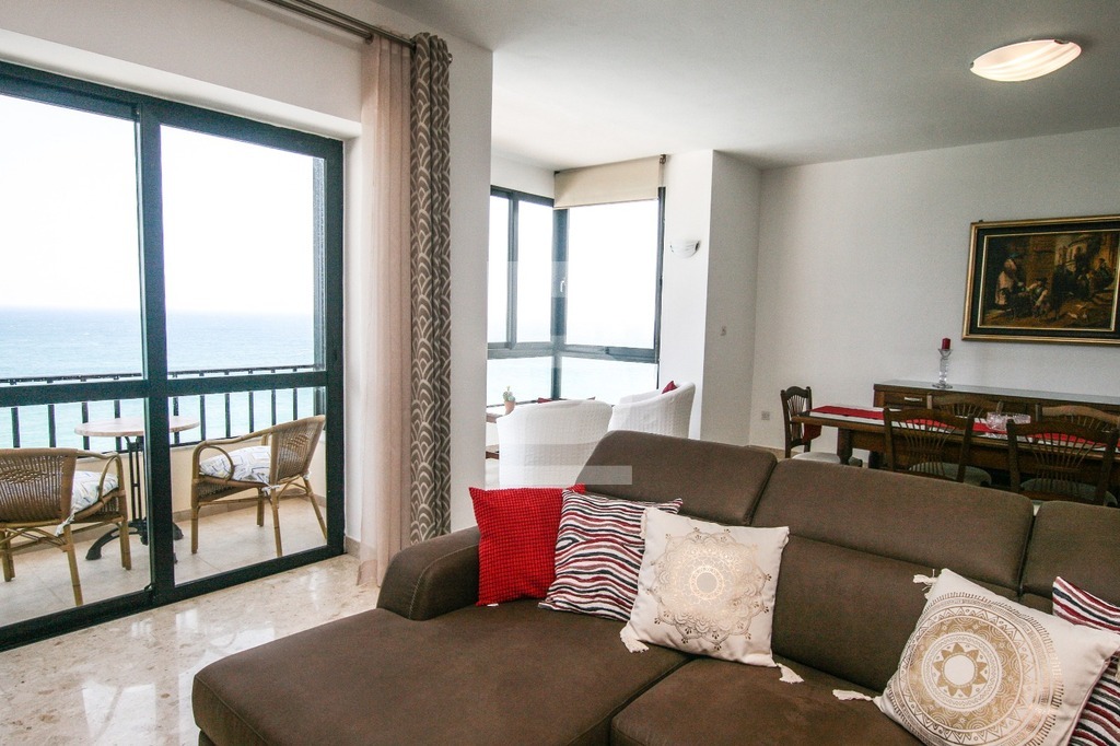 Feel the nice breeze of the Mediterranean sea directly from your living room, when residing in this spacious 3 bedroom sea front apartment. A nice open plan area comprising of an equipped kitchen dining and double fronted living room welcomes you and your guests, leading onto the front balcony with unobstructed seaviews, the ideal swimming spot for locals and expats. Sleeping facilites comprise of 3 large bedrooms, one with walk in wardrobe and en-suite facilities, whilst the other two bedrooms share the main bathroom. Parking arrangements can be made in the underlaying garage. Most shops and bus stops are reachable within few minutes walk, the best location to reside in if you enjoy urban living.