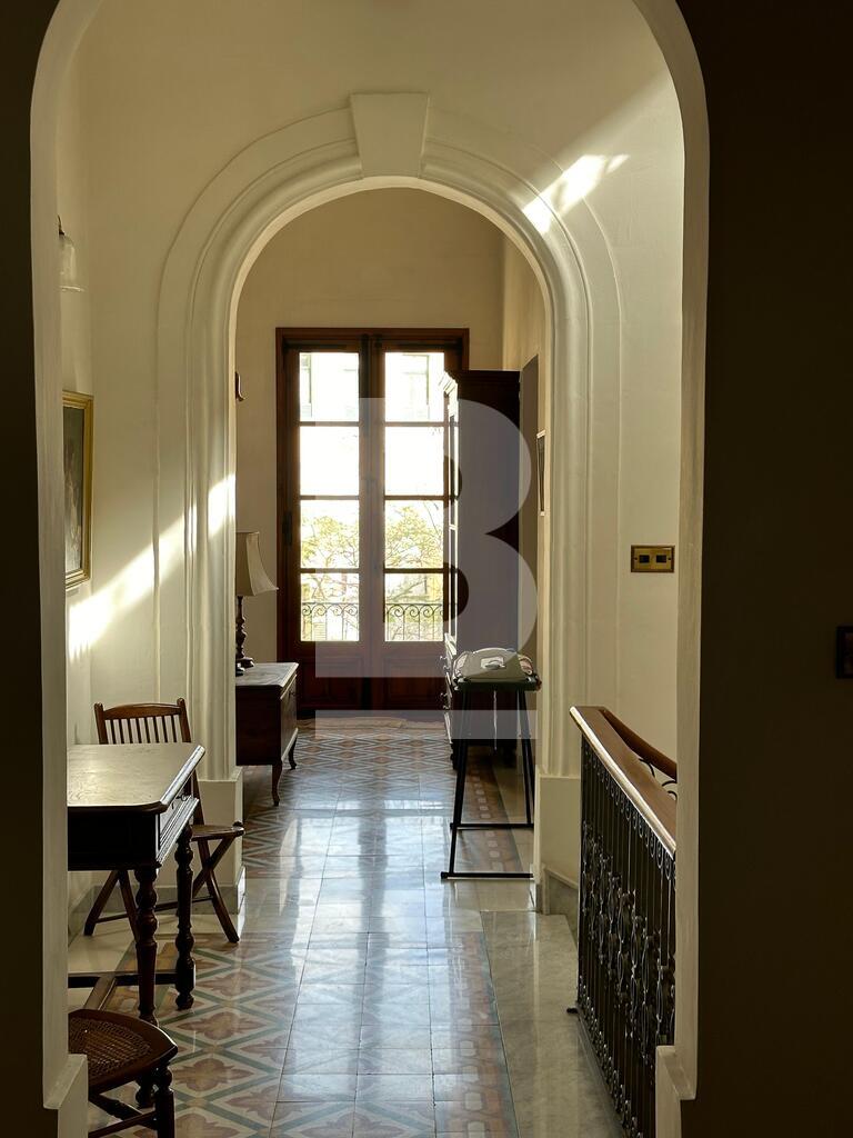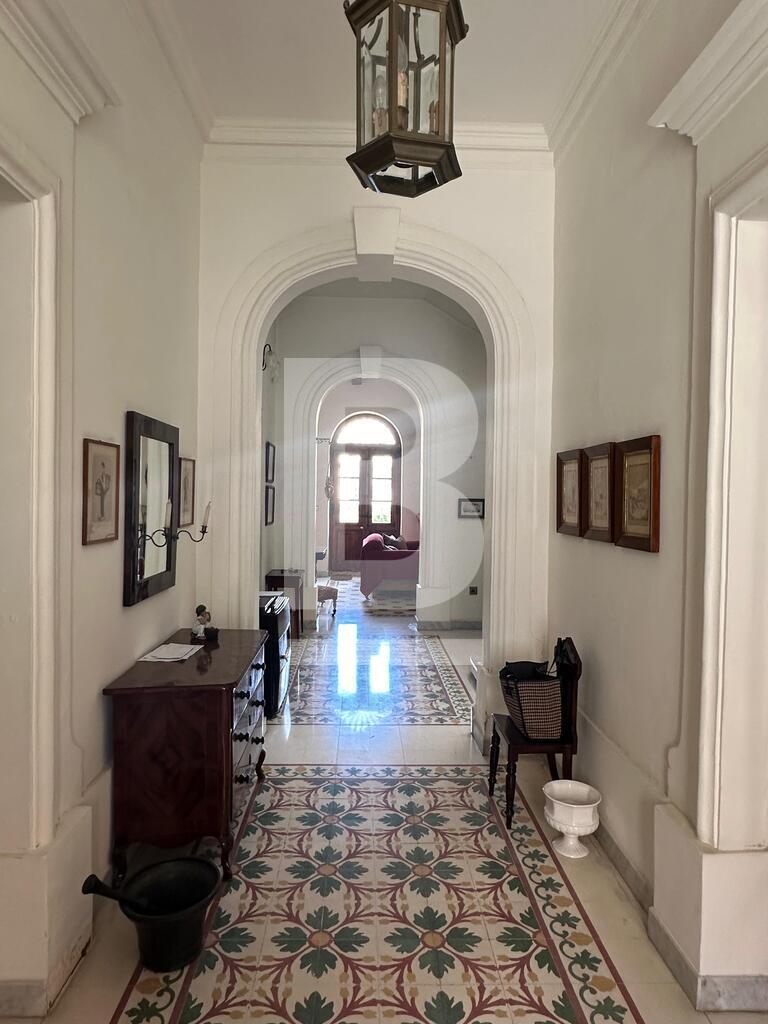 A rare and stunning double-fronted townhouse located on one of Sliema’s most sought-after streets. This is the last remaining protected row of prestigious homes with front gardens—an exceptional opportunity for discerning buyers seeking both a distinguished residence and a sound investment. Entering the property through its charming front garden, you are greeted by a majestic entrance hall flanked by elegant lateral rooms. High ceilings, intricate cornices, and traditional Maltese patterned floor tiles set the tone for the rest of the residence, blending classic sophistication with welcoming warmth. The living room and kitchen look out onto a sizable back garden with space for a pool, further complement the residence. A marble staircase leads to three spacious double bedrooms, two well-appointed bathrooms, as well as a utility room and a separate laundry room located on the roof level. With its flexible layout, abundant natural light, and prime position in a sought-after neighbourhood, this rare offering combines lifestyle, generous space, and a genuine sense of home. All three levels are conveniently served by a passenger lift. An optional garage is also available for purchase.