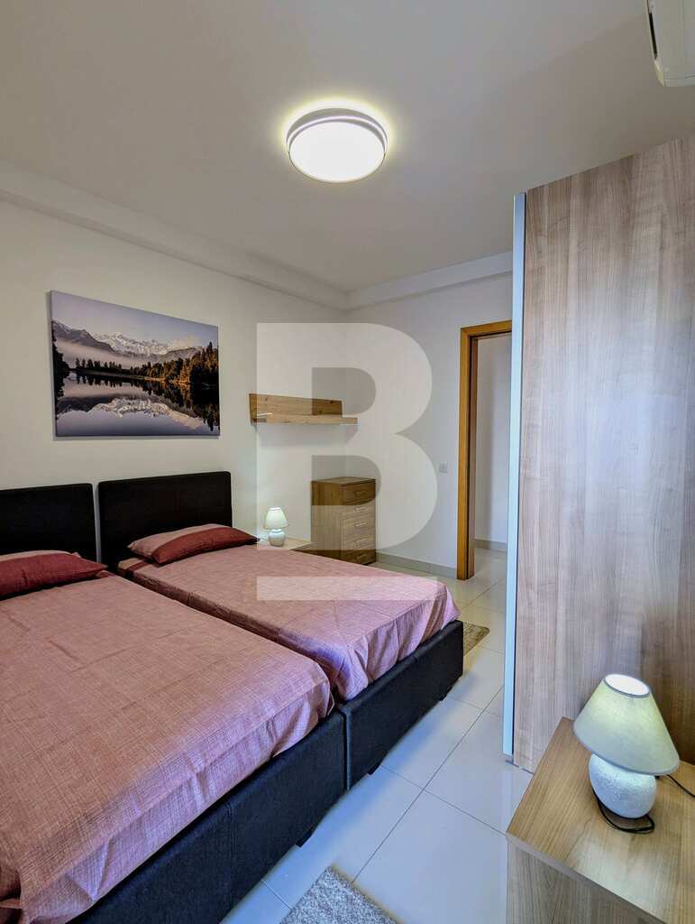 A brand new 2-bedroom 5th floor apartment located near Independence garden and Sliema's seafront offering a blend of comfort, convenience and practical squarish layout , making it ideal location and setup for both families or individuals to reside in. An open plan kitchen / living area leads onto the front balcony, located just a corner away from the popular rocky beach, whilst the two bedrooms, one equipped with a double bed and en-suite facilities, and the other with two single beds, offer the comfort needed for a good night's rest. The main bathroom also comes with a spacious shower. Complimenting this property is an interconnecting car space with extra storage. An elegant home which needs to be viewed to be appreciated.