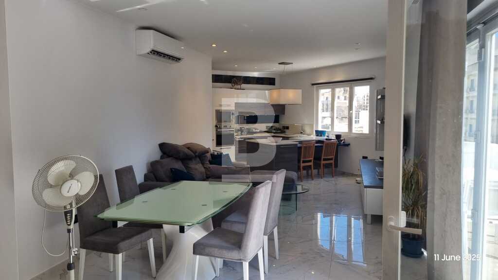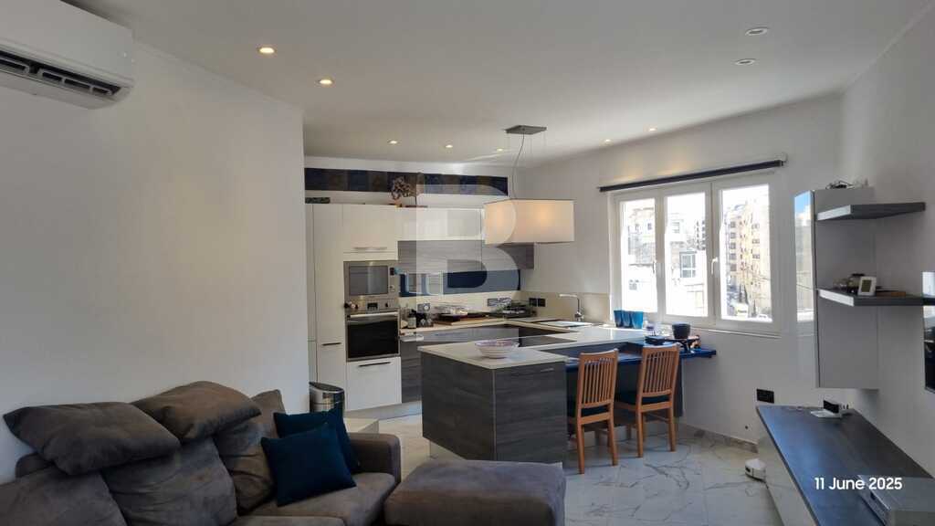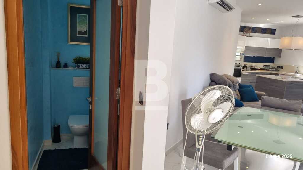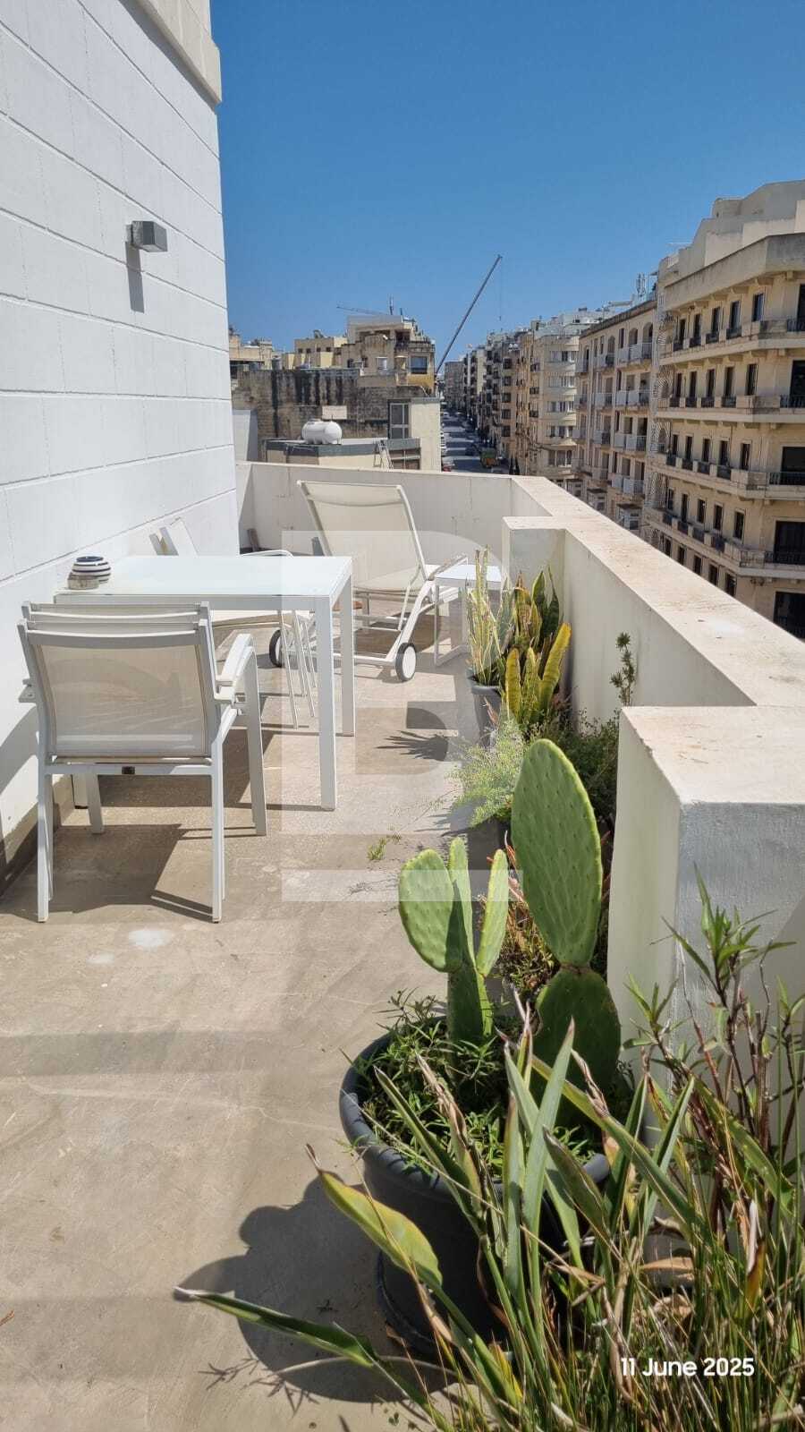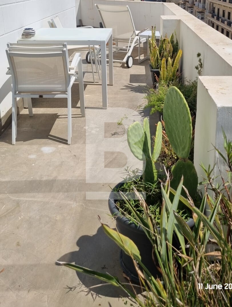 Located in Sliema's very popular neighbourhood, just 1 minute walk to the beach is this very brigh one bedroom penthouse. This lovely home has a terrace all around enjoying the nice breeze and views of the mediterranean sea. A bright spacious living area and well equipped kitchen lead onto the terrace, there is also seperate laundry room and guest toilet whilst the bedroom includes a walk through wardrobe and a large bathroom. This property offers a unique living experience, having all amenities reachable within 1 minute walk, and is being rented out fully airconditioned.
