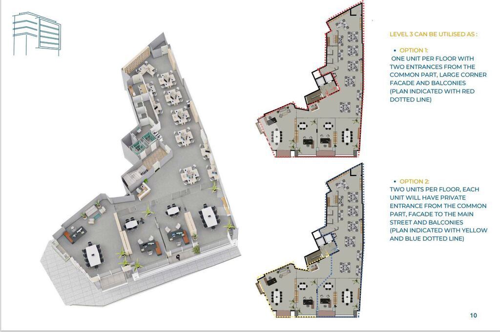 An 8 floor landmark development perfectly positioned between Valletta and Sliema offering breathtaking views overs Marsamxett Harbour and Manoel Island. Office space on level 3 measuring 266sqm. Designed with sustainability, this project offers a variety of open-plan spaces ideal for offices, clinics, studios, restaurants and more. Modern lobby with concierge desk and reception area. Basement parking for staff and visitors. On-site maintenance and cleaning services. Completion Q1 2026.