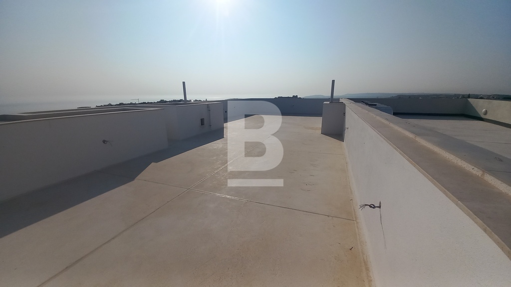 New on the market in a sought out area of Mellieha and in a block of only 5, is this 2 bedroom apartment ,with ensuite in main bedroom , a decent sized main bathroom ,laundry room , back balcony and an open plan Kitchen/Living/Dining area with a terrace enjoying sea and country views and sunsets. Airspace is included and enjoys amazing views ,also free of any water tanks and other obstacles. Will be sold finished excluding bathrooms and internal doors.Garages available at an optional price .Freehold