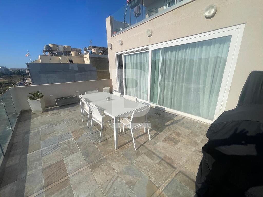 Well finished 3 bedroom DUPLEX PENTHOUSE located in a residential area of Marsascala, just off seafront. The property consists of 3 double bedrooms (main with shower en suite and a large walk in wardrobe), open plan kitchen/sitting/dining room, main bathroom, another 2 double bedrooms. On the 2nd floor of this property you will find enjoyable large terrace with beautiful open views and outdoor furniture, perfect for enteraining Property is exuipped with all the appliances and AC units all through. This beautiful duplex penthouse is also pet friendly.