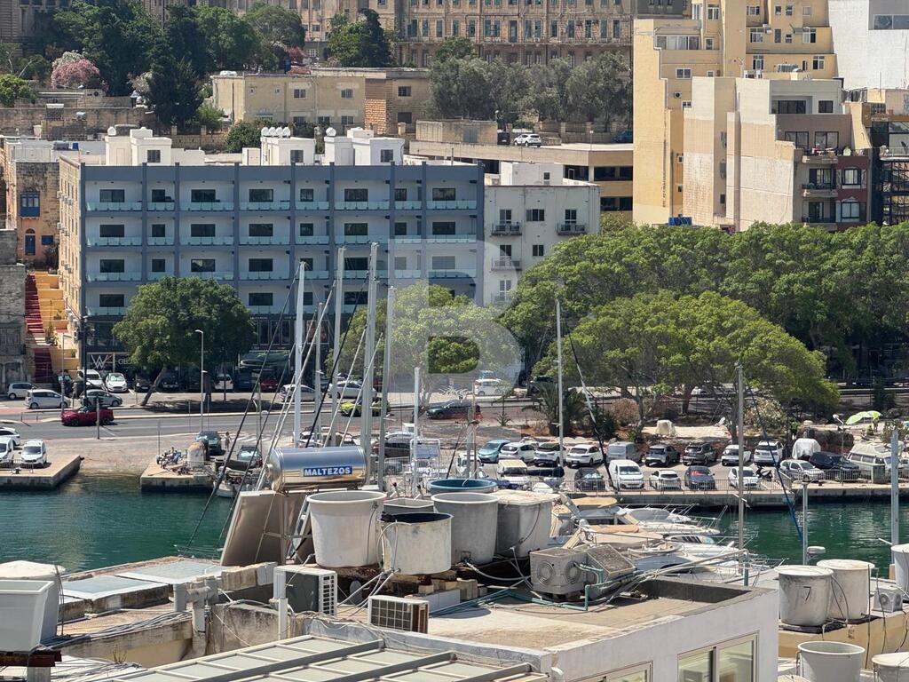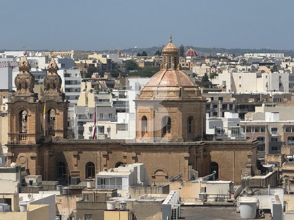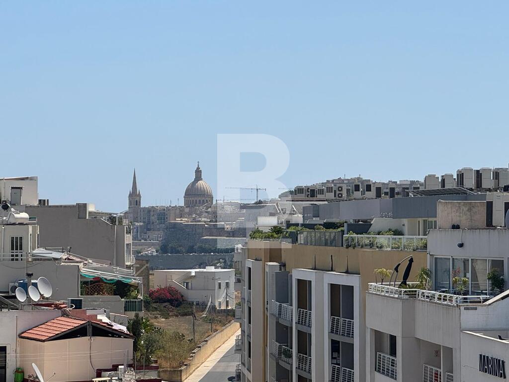 The fully airconditioned penthouse offers urban views of the historical Valletta’s bastions, Manoel Island, Msida Creek, Imsida Church and beyond. The upper floor includes a kitchen/ dining area, guest toilet, and living room. The lower floor features a bedroom, bathroom, and a separate office space. Both levels are accessible by lift. Terraces have access to the roof.