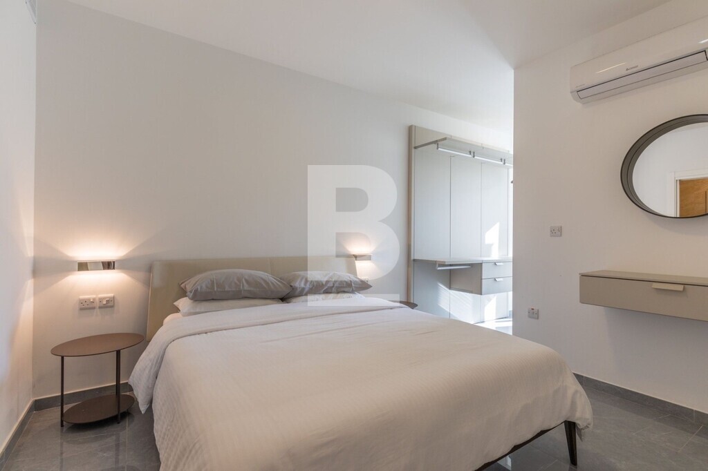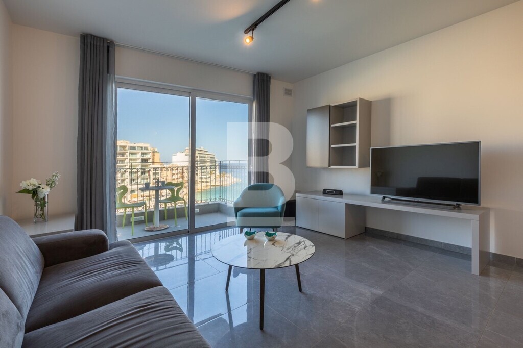 Enjoy breathtaking sea views and the vibrant lifestyle of St. Julian’s in this beautifully finished 2-bedroom apartment, perfectly located on the st Julians promenade This spacious and bright home features an open plan kitchen /living /dining room leading on to a terrace with stunning seaviews . A fully equipped kitchen with dishwasher, 2 comfortable bedrooms , main with en suite and back balcony. A main bathroom . Full air conditioning for year round comfort .