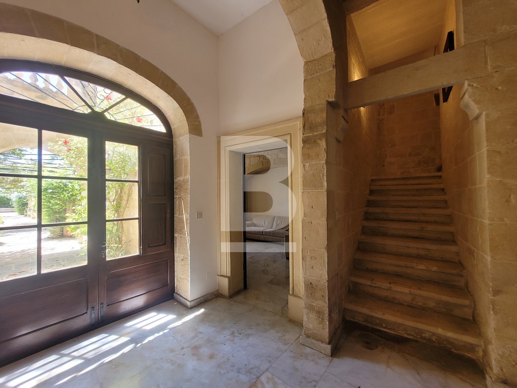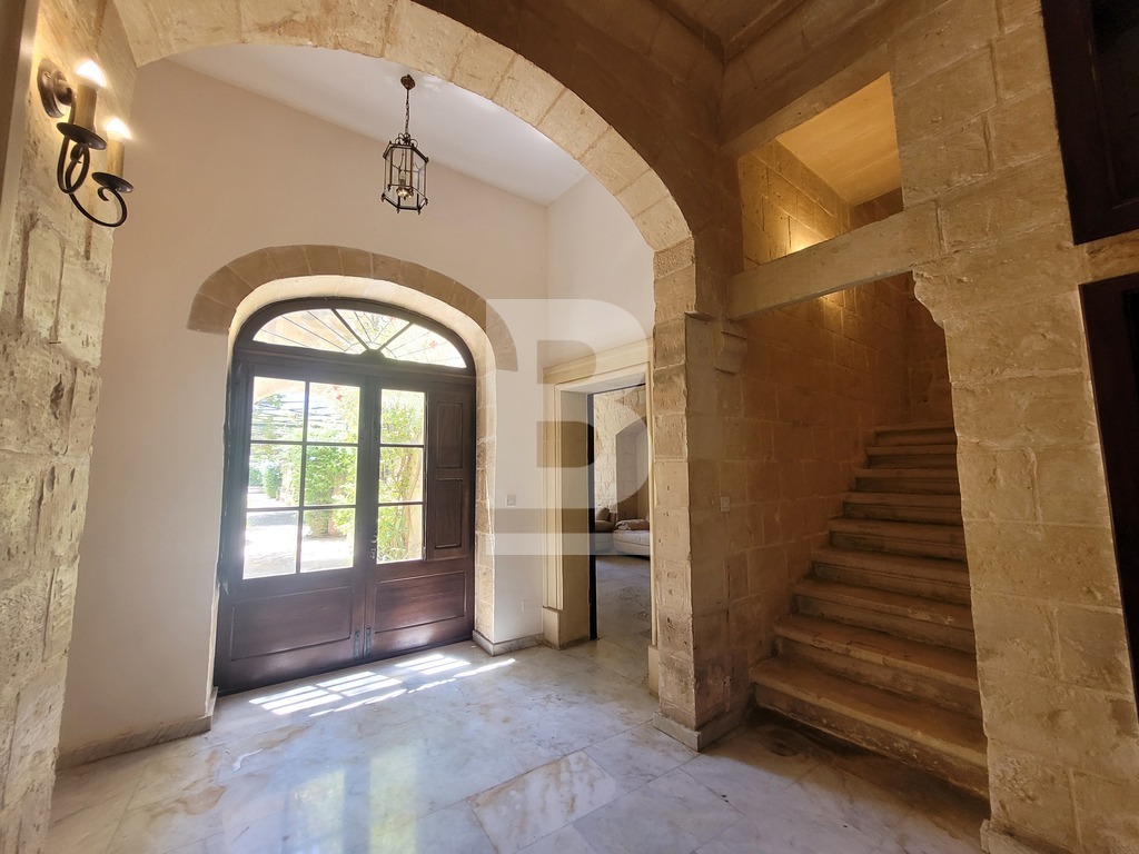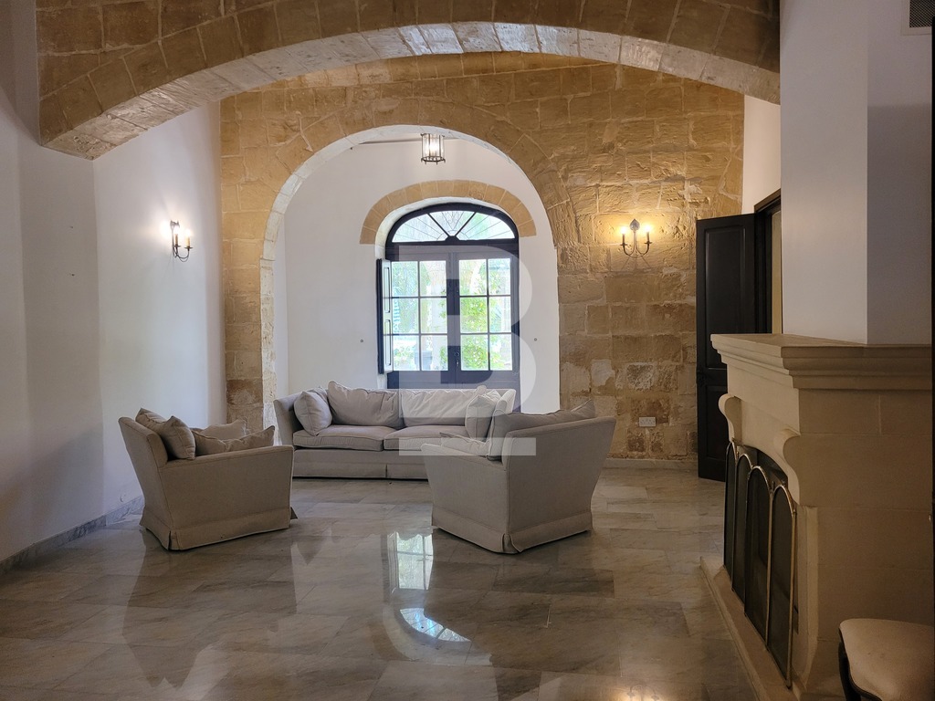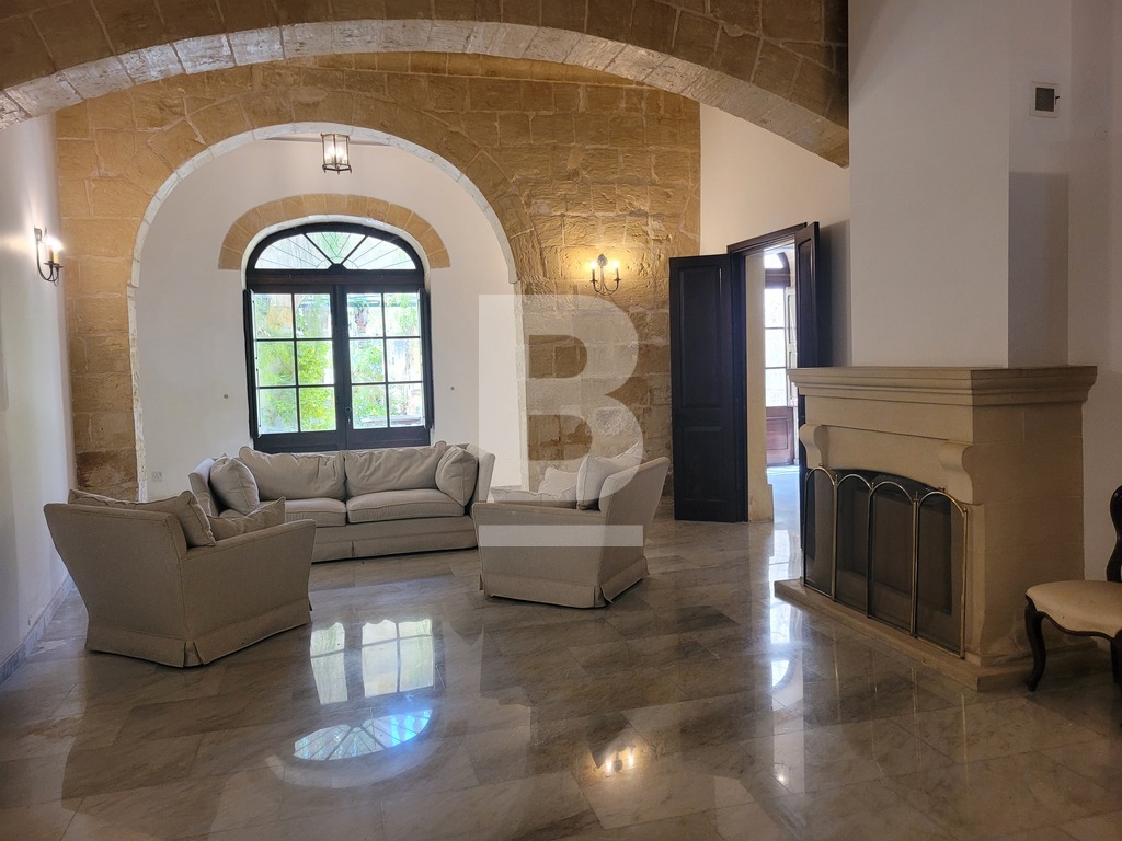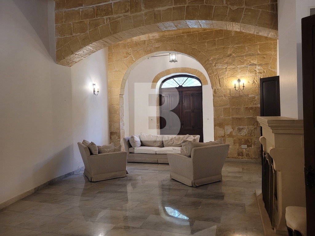 A prestigious, triple-fronted palazzo-style townhouse in the heart of Balzan’s UCA village core. Set on a generous 1400sqm plot, this one-of-a-kind residence is rich in Maltese heritage and brimming with authentic architectural detail. Comprising of a grand entrance hall flanked by two elegant lateral rooms, formal and family lounges both with working fireplaces, a study, guest toilet, and a spacious kitchen/breakfast area.