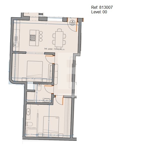 This ground-floor maisonette is being offered in shell form at pre-construction pricing and is fully wheelchair accessible. The internal layout includes an open-plan kitchen, living, and dining area, two bedrooms, and a main bathroom. Completion of the project is anticipated by the end of 2027.