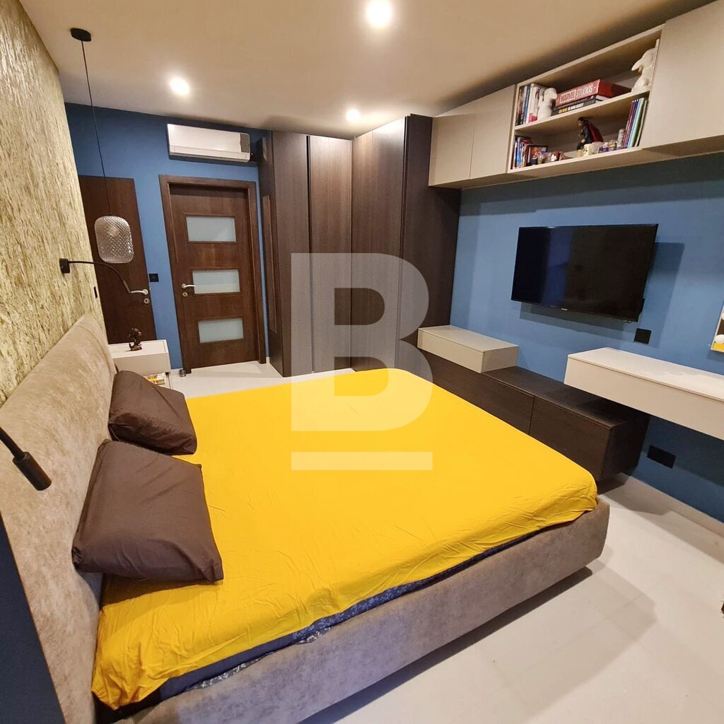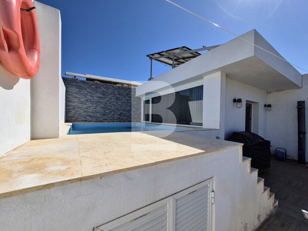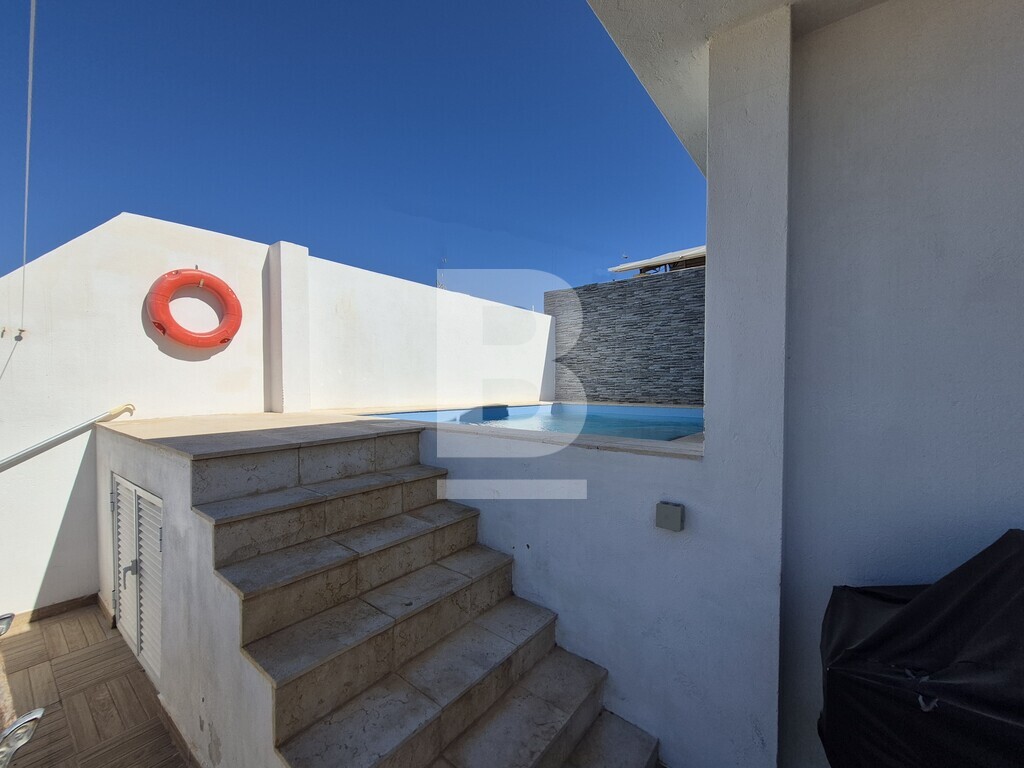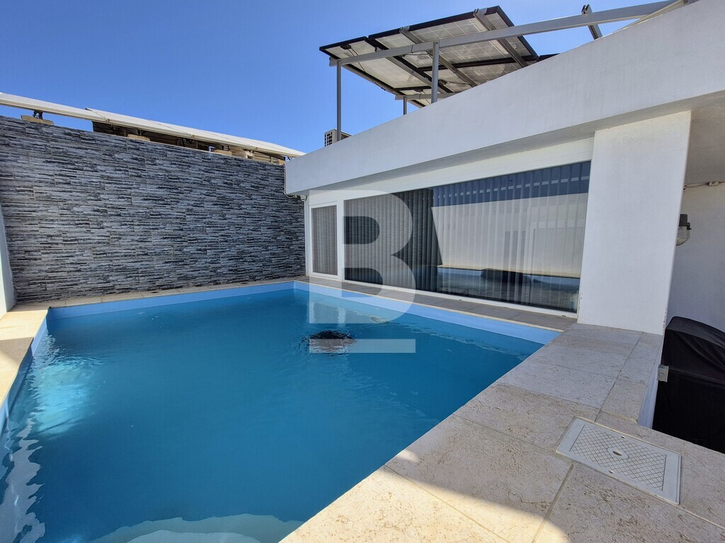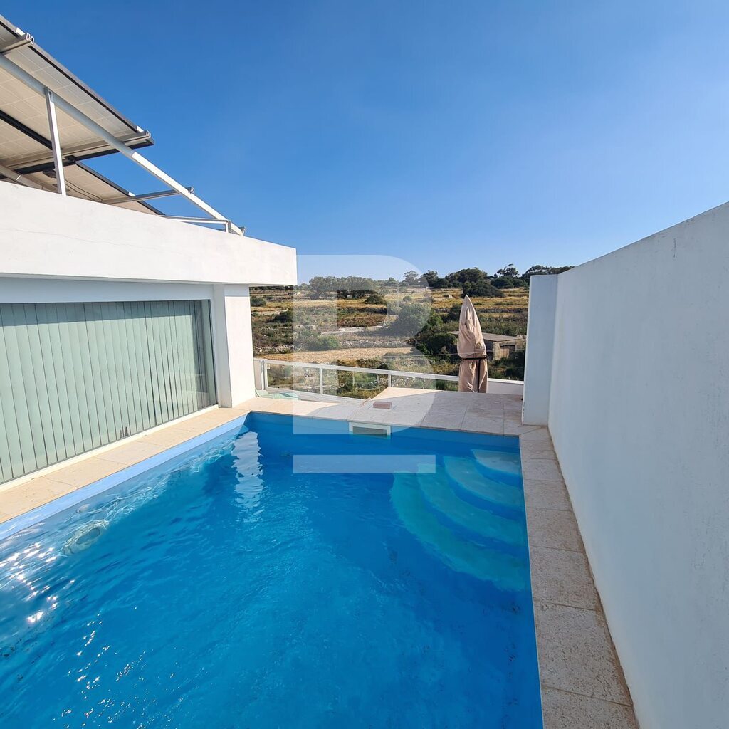 This stylish 3-bedroom duplex maisonette with private pool and countryside views is located in a peaceful area of Birzebbugia, just a 10-minute walk from Pretty Bay Beach. Accessed through a private entrance, the property offers a rare blend of comfort, privacy, and outdoor living. The internal layout features a bright and spacious open-plan kitchen, living, and dining area, which also includes a dedicated office space, all fitted with premium appliances and quality finishes. Three double bedrooms are included, with the master bedroom enjoying its own en-suite. One of the spare bedrooms is flexible in layout and can be converted to include either an en-suite or a walk-in wardrobe. A large main bathroom, front terrace, and two rear balconies complete the main level. Upstairs, you’ll find a well-sized rooftop office overlooking the private pool, along with a generous rooftop terrace ideal for entertaining, complete with a BBQ area, solar shower, and a large washroom that can be repurposed as a kitchenette, additional office, hobby room, or storage space. Additional features include central heating powered by a modern wood pellet hydro stove, photovoltaic panels, full insulation, and air-conditioning throughout. The property is being sold fully furnished and is ready to move into. Two street-level garages are also available as an optional extra. A rare opportunity to acquire a move-in-ready, high-spec home in a quiet and desirable part of Birzebbugia.