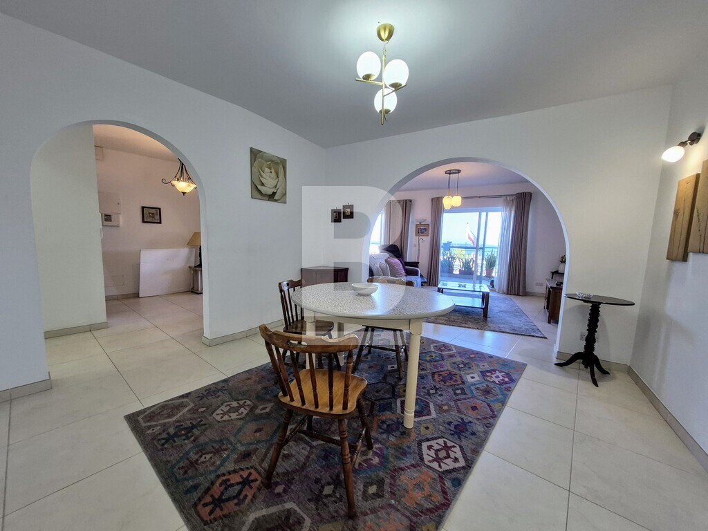 Set along the Qawra seafront, this recently renovated three-bedroom apartment offers uninterrupted sea views and a generous 215-square-metre layout designed for both comfort and practicality. The open-plan living and dining area leads onto a spacious front terrace—perfect for peaceful mornings and breathtaking sunrises. The master bedroom features an ensuite bathroom, while two additional bedrooms and a second modern bathroom provide ample space for family or guests. The property enjoys abundant natural light throughout, thanks to two internal yards and a service shaft. A private backyard offers a quiet space for outdoor relaxation or gardening, and a separate utility room adds to the home’s functionality. Situated just steps from the promenade, cafés, restaurants, shops, and public transport, this apartment combines a prime location with everyday convenience—ideal as a main residence, holiday retreat, or high-potential rental investment.