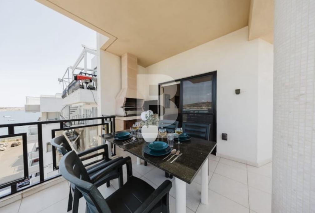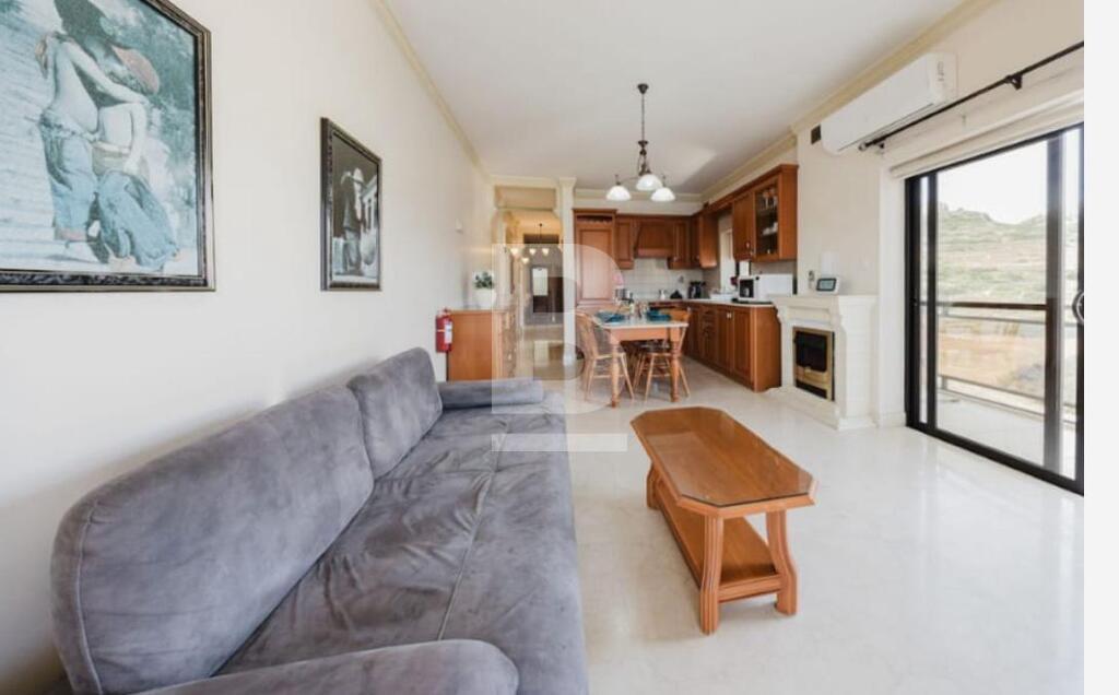 Situated in a quiet part of Mellieha, with access to shops and public transport within walking distance, This elevated apartment comprising of an spacious entrance hall, an office, living/sitting area with an access to a large front terrace, a corridor leading onto a master bathroom with a corner bath, two bedrooms , the master one with an en-suite bathroom and an extremely big back terrace with a BBQ area and separate wash/box and storage room, and also separate kitchen/dining with and small courtyard and an exit to back terrace. The property is being offered fully furnished and equipped with all necessary appliances