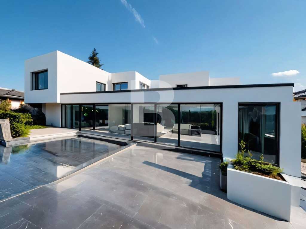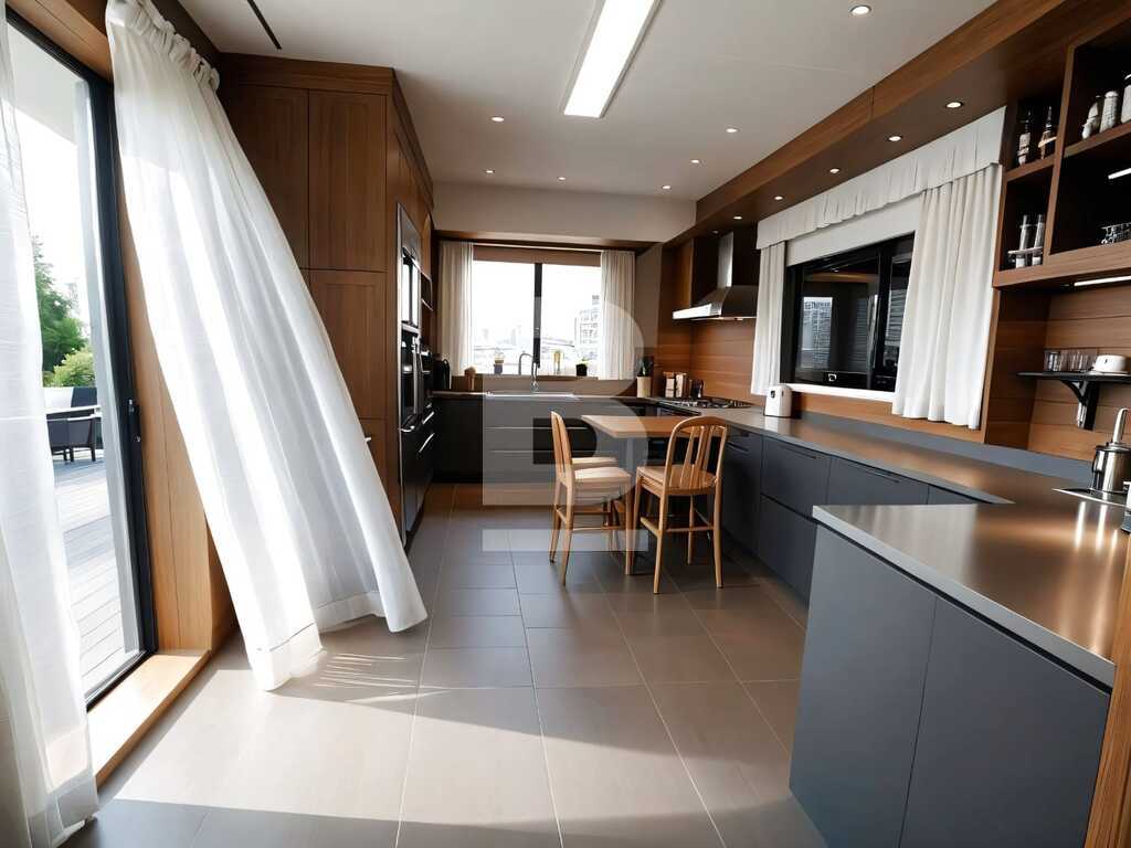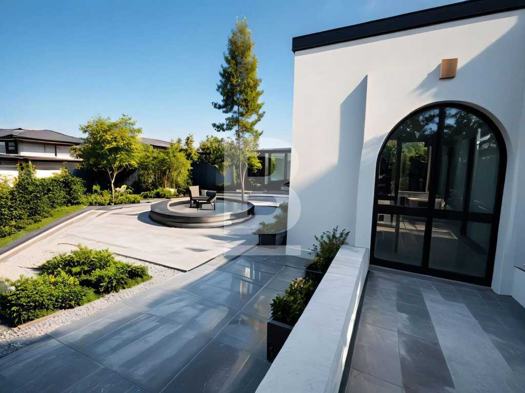 The current layout comprises an elegant entrance hall leading to a formal sitting room, followed by a spacious open-plan living and dining area, and a separate kitchen—all with direct access to a beautiful 85 sqm terrace overlooking mature gardens and panoramic views.