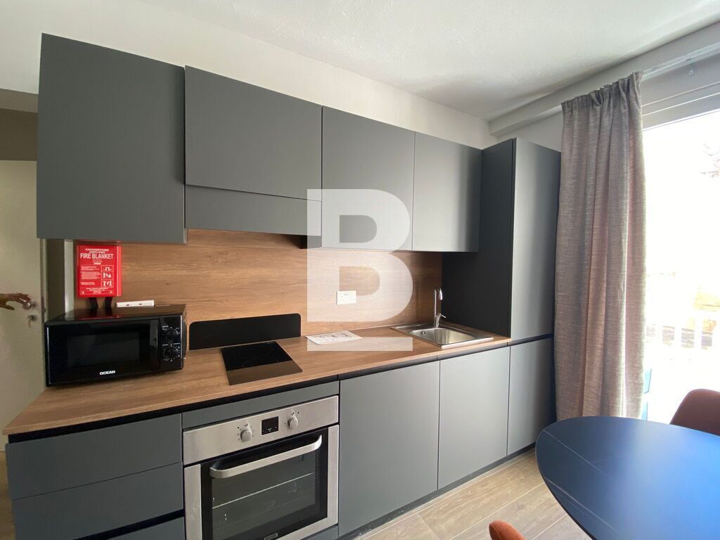 Fully furnished studio apartment in Sliema is fully equipped with modern appliances, including washing machine and dishwasher, kitchen essentials and AC unit.