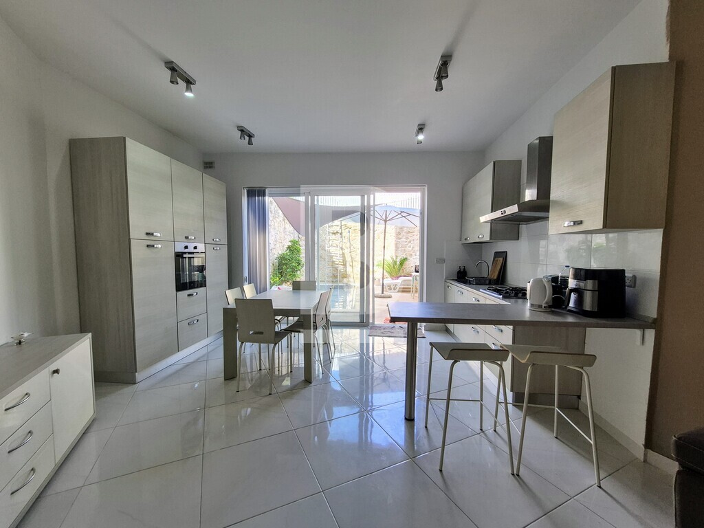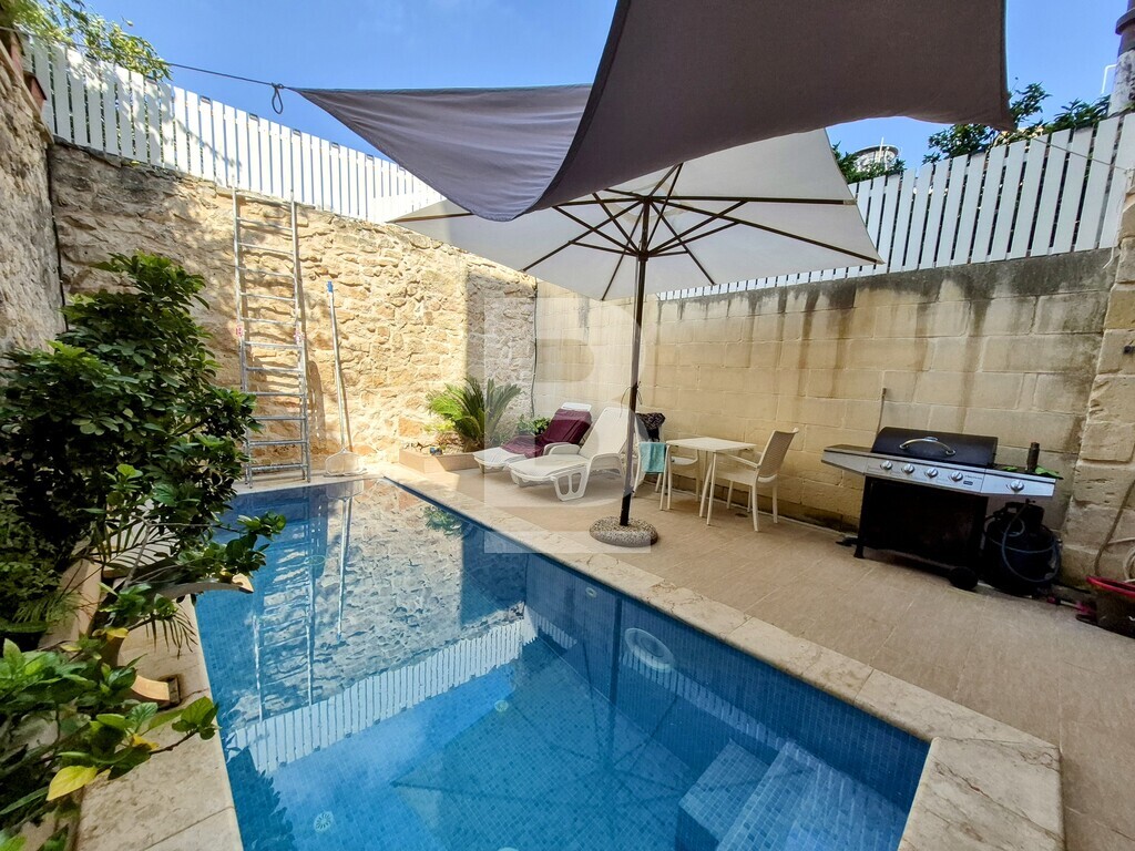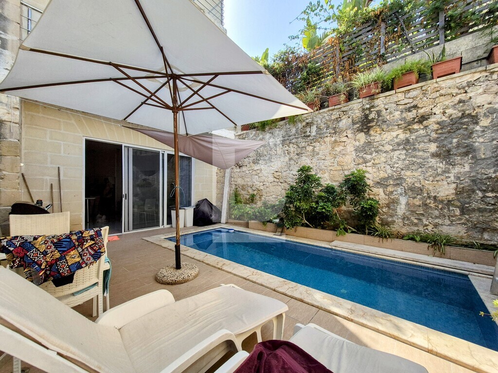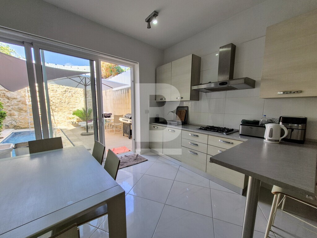 Exceptional renovated townhouse in a prime Sliema location, minutes from Balluta Bay, within a desirable Urban Conservation Area (UCA). This beautifully restored home, just steps away from the stunning bay, perfectly combines contemporary comfort with classic appeal. Offered fully furnished and ready for immediate occupancy, the property is designed for stylish, convenient living. On the ground floor, you’ll find a welcoming sitting area that flows seamlessly into a bright, open-plan kitchen, living, and dining room — all overlooking a spacious private pool, ideal for entertaining or unwinding. A guest bathroom adds practical convenience on this level. The two upper floors accommodate four generously sized double bedrooms — two bedrooms on each floor — with two of the four bedrooms featuring en-suite bathrooms, complemented by an additional modern bathroom on each floor. The rooftop features a large washroom along with front and rear terraces, providing versatile outdoor spaces with great views. Additional highlights include brand-new furniture and appliances throughout, a newly installed passenger lift connecting all floors for easy access, and an optional oversized garage nearby. This property offers excellent value and flexibility — perfect as a stylish family residence, a vacation home, or with potential for short-term rental like Airbnb. Contact me today to arrange a viewing.