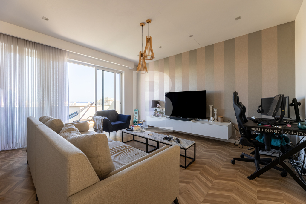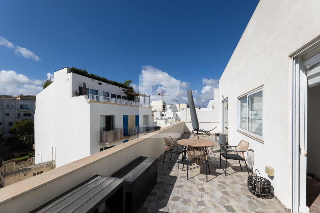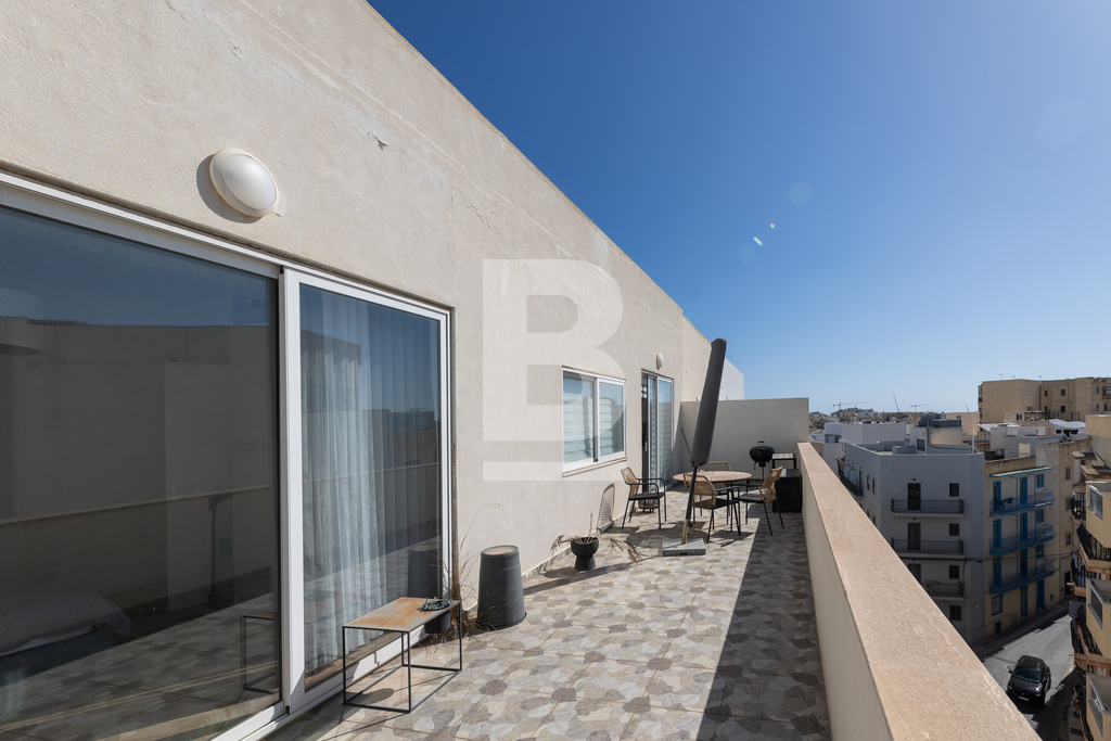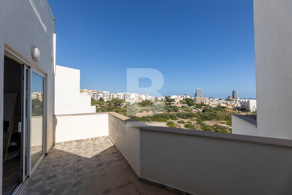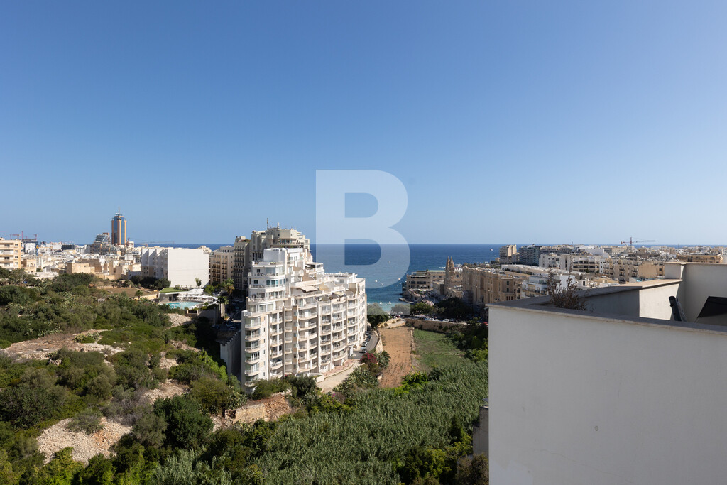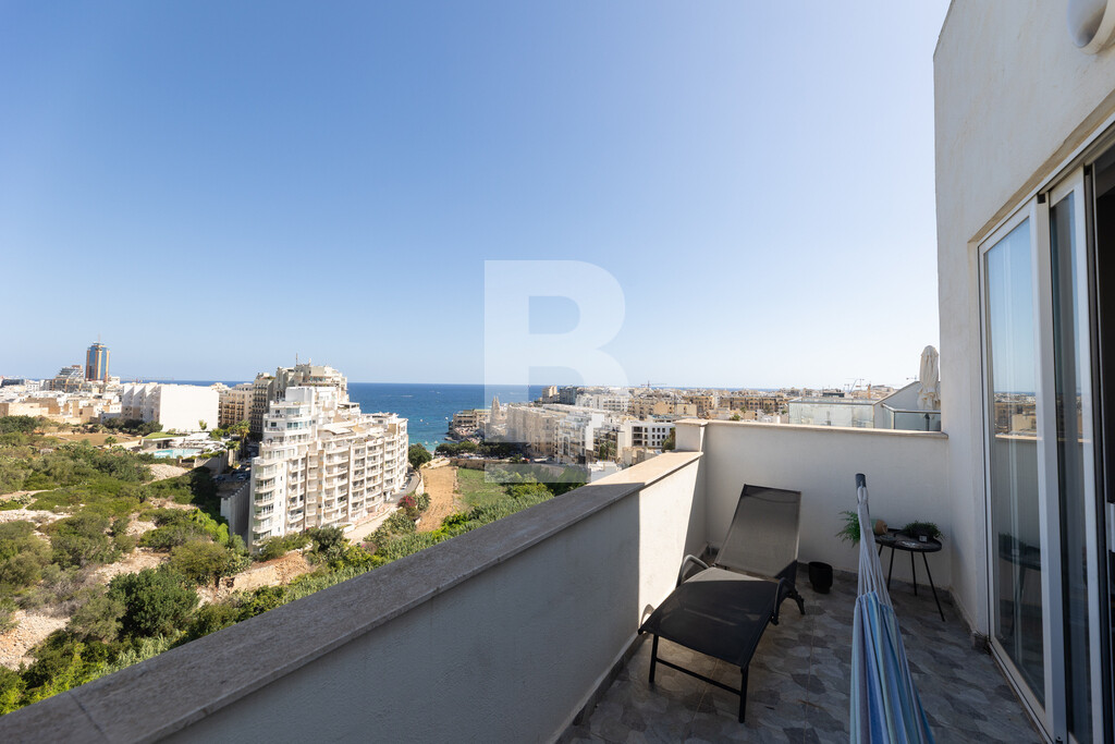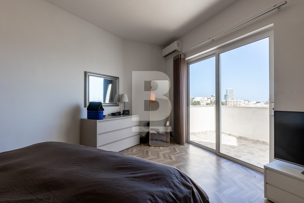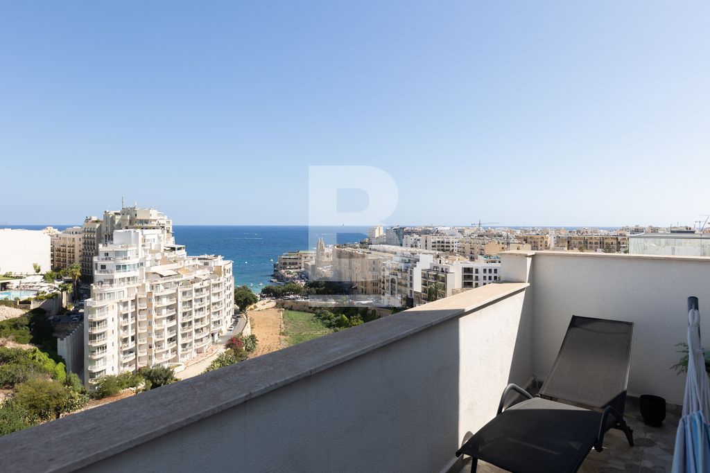 A fully furnished and equipped Penthouse situated in a very central location between St. Julian’s and Sliema and exceptionally close to all amenities. This property comprises of a bright and open plan living/dining/kitchen area leading onto large front and back terrace, one of which enjoys fantastic views stretching down to Balluta bay and beyond. Accommodation also includes two double bedrooms, a main bathroom and a guest toilet. The property is being offered fully equipped and air-conditioned and also offers an optional underlying lock-up garage.