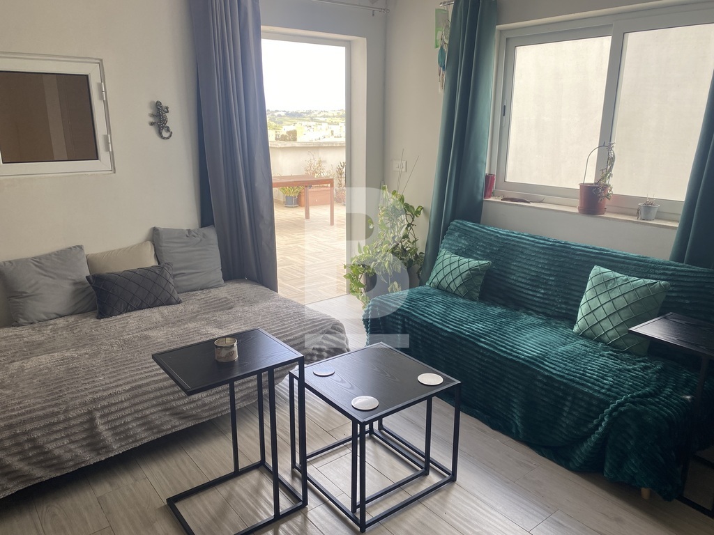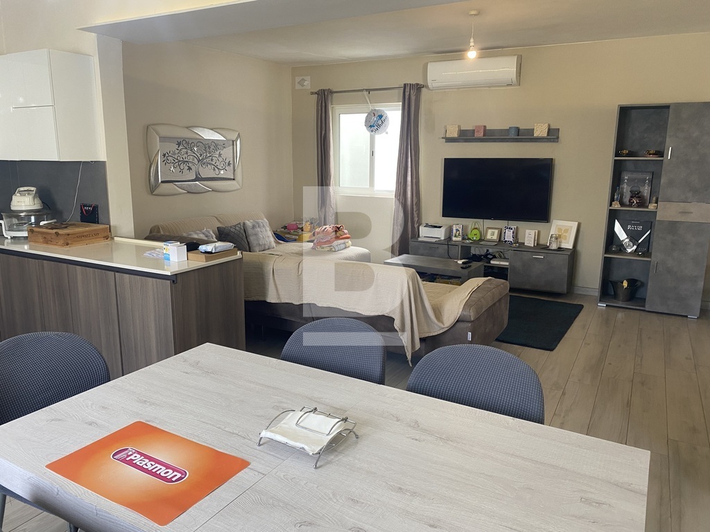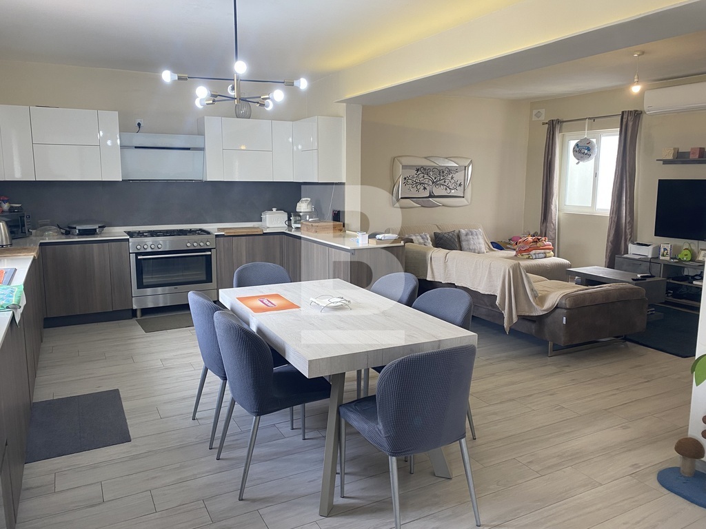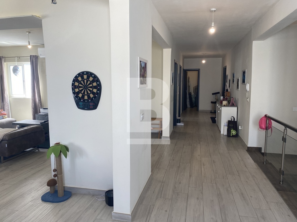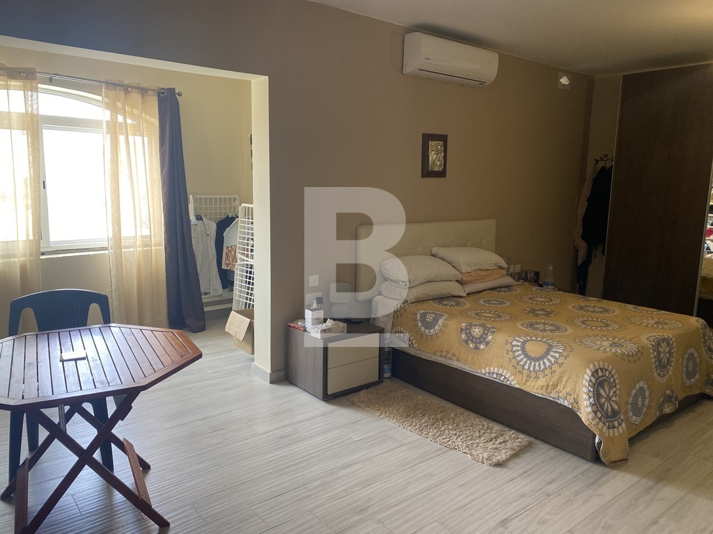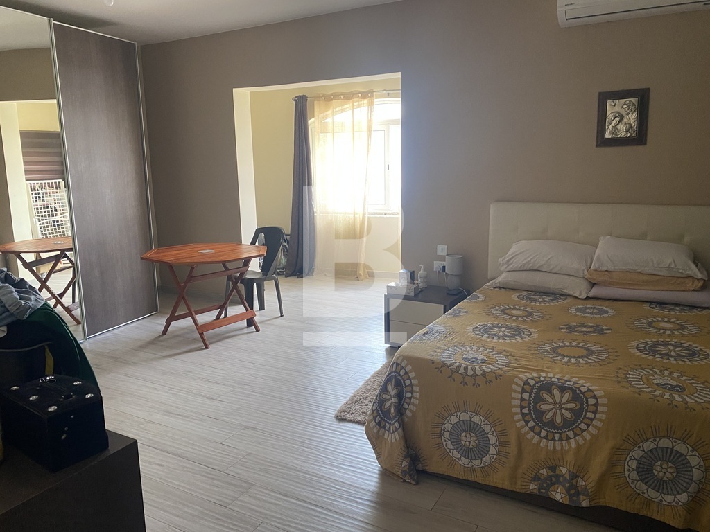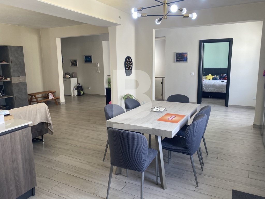 Rabat, situated in a quiet residential area close to the main square facing a protected garden having open views, is this first floor lovely spacious open plan maisonette measuring approx. 200sqm in total. Property has a very welcoming wide hallway leading to an open plan large kitchen/living/dining room, 3 double bedrooms, one having a walk in wardrobe. The main bedroom is very large in size and has ample space for a study area if one needs. Shower room and a large main bathroom/washroom which can also facilitate an ensuite bathroom. Stairs leading to the roof area which has been kitted out with a living room, kitchenette, spare toilet and a lovely terrace with far reaching views ideal for entertaining. Extras include solar panels as well as ac units. A wonderful space for a family. Highly recommended