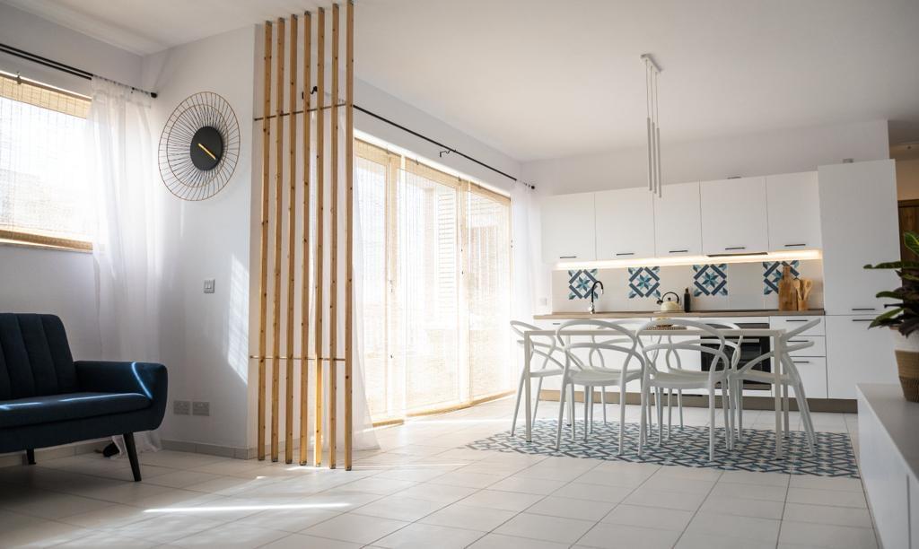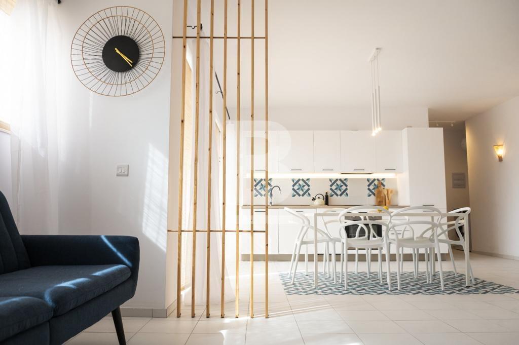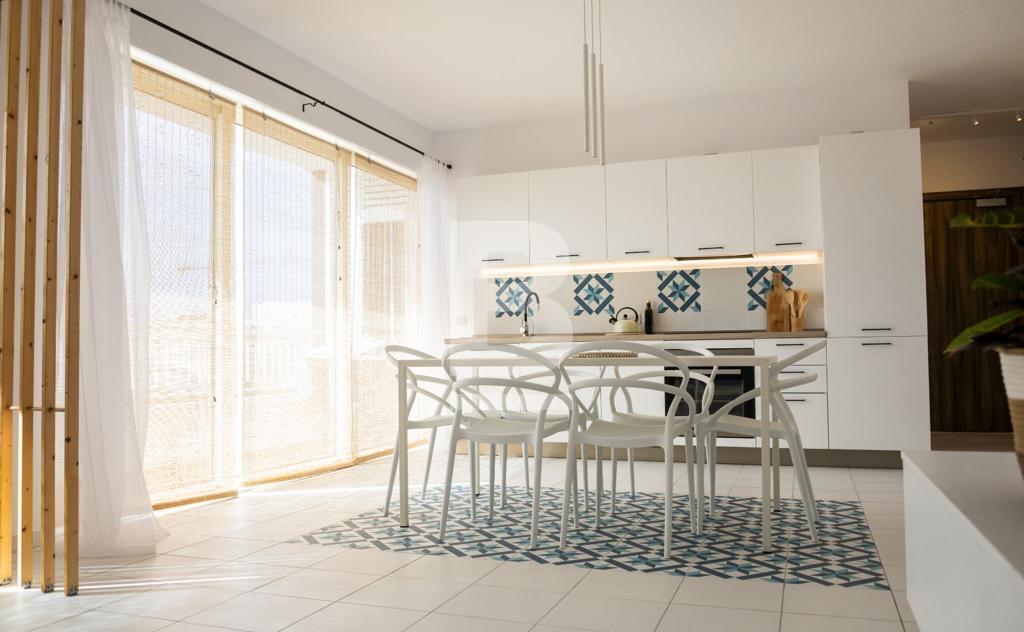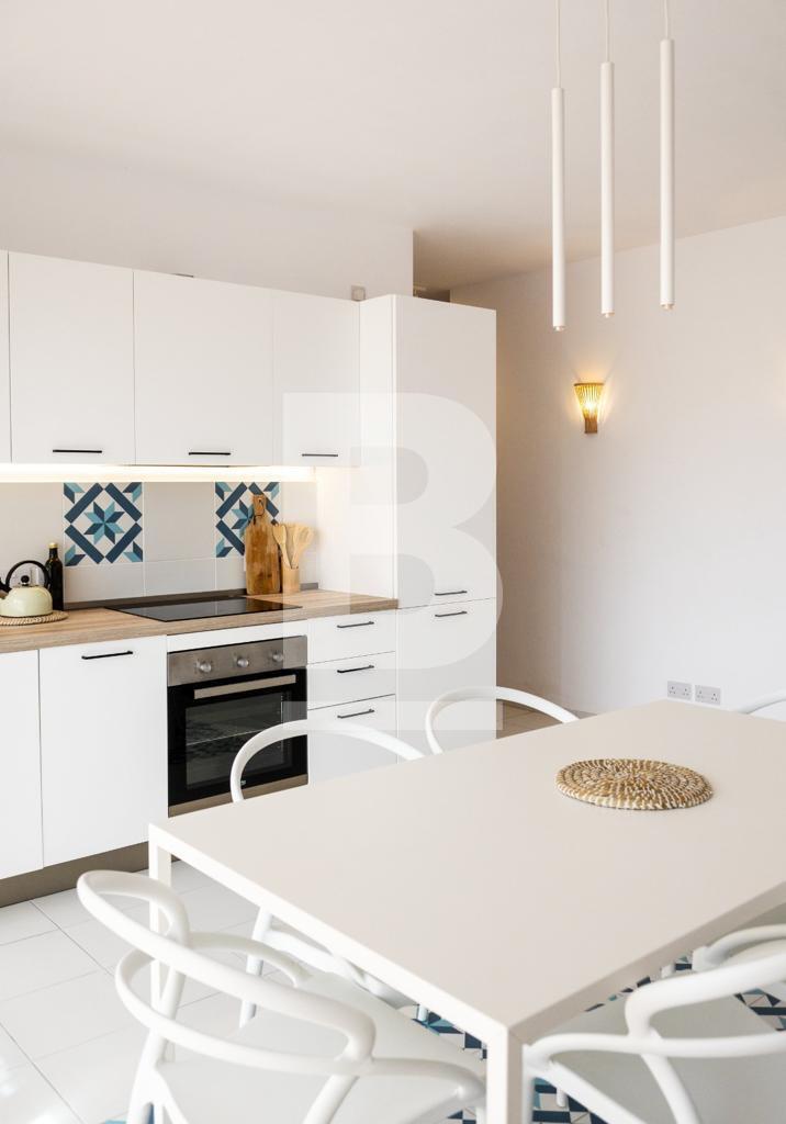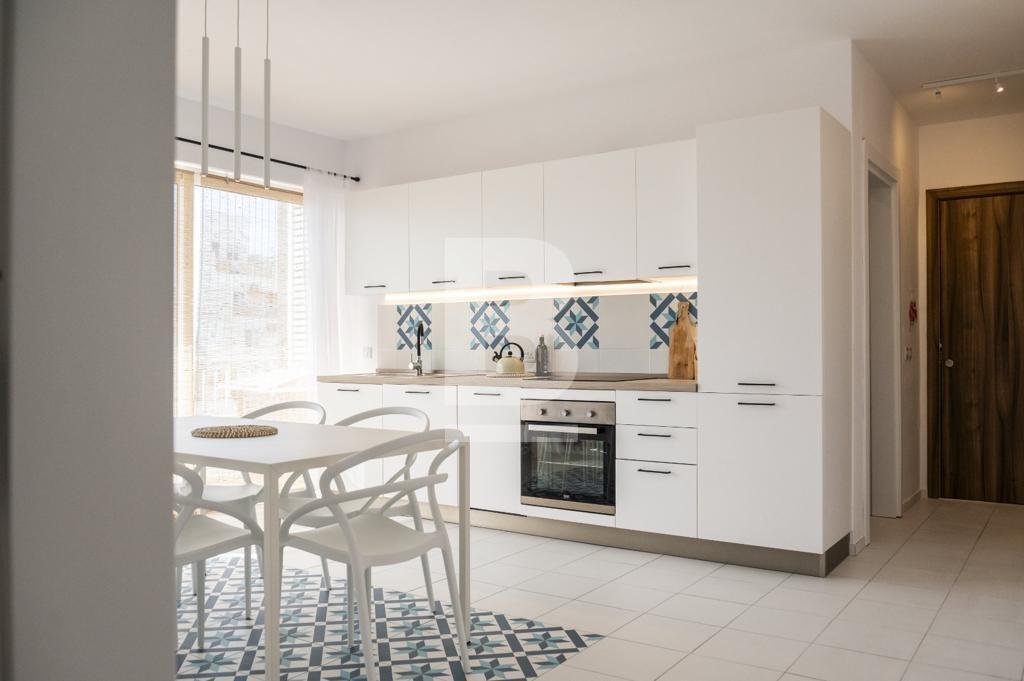 Excellently Well-lit 2 Bedroom Apartment in Qawra. Comprising a double bedroom with an en-suite bathroom, a twin bedroom (sleeping up to 4 people), a further main bathroom, a squarish open plan kitchen, living and dining area with a front balcony allowing tons of natural light to flood the apartment. The property is fully air-conditioned, situated on the 5th floor, served with a lift and located just a couple of roads away from the Qawra Seafront lifestyle with restaraunts, bars, cafes and more...