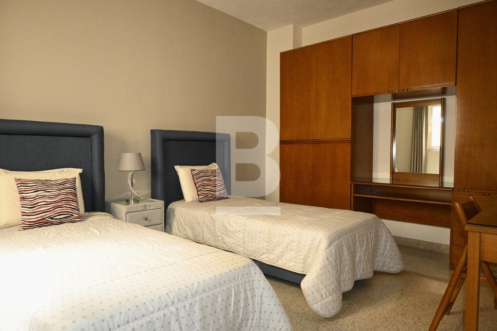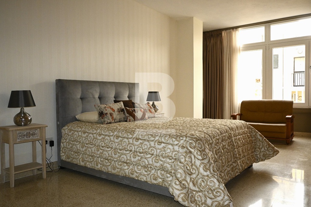Feel the nice breeze of the Mediterranean sea directly from your living room, when residing in this spacious 3 bedroom sea front apartment. A nice open plan area comprising of an equipped kitchen dining and double fronted living room welcomes you and your guests, leading onto the front balcony with unobstructed seaviews, the ideal swimming spot for locals and expats. Sleeping facilites comprise of 3 large bedrooms furnished with solid wood furniture, the master bedroom has it's private en-suite facilities, whilst the other two bedrooms share the main bathroom. A spacious seperate laundry area is also available in the apartment whilst parking arrangements can be made in the underlaying garage. Most shops and bus stops are reachable within few minutes walk, the best location to reside in if you enjoy urban living.