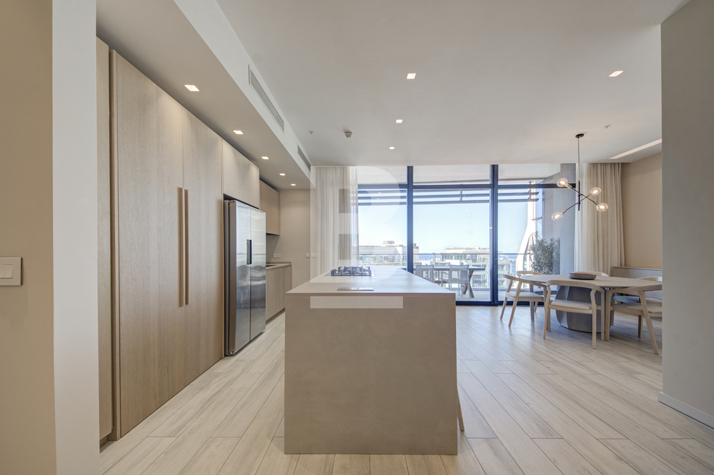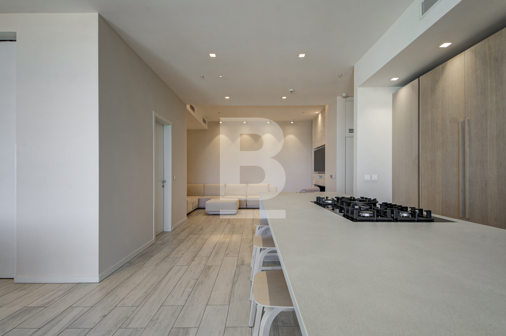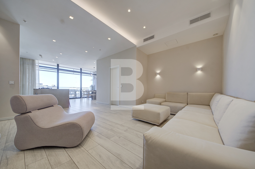 Welcome to this exceptional 9th-floor corner apartment in the exclusive Tower Residences at Pendergardens, St. Julian’s most prestigious address in the heart of Malta’s vibrant lifestyle district. This elegant 3-bedroom, 3-bathroom home offers 160 sqm of beautifully crafted interiors and 35 sqm of private terraces, blending minimalist-Mediterranean design with top-tier functionality. High ceilings, recessed lighting, and bespoke designer furnishings—including a Molteni dining table, Musa sofa, and The Cut Italian kitchen—create a luxurious yet inviting atmosphere.