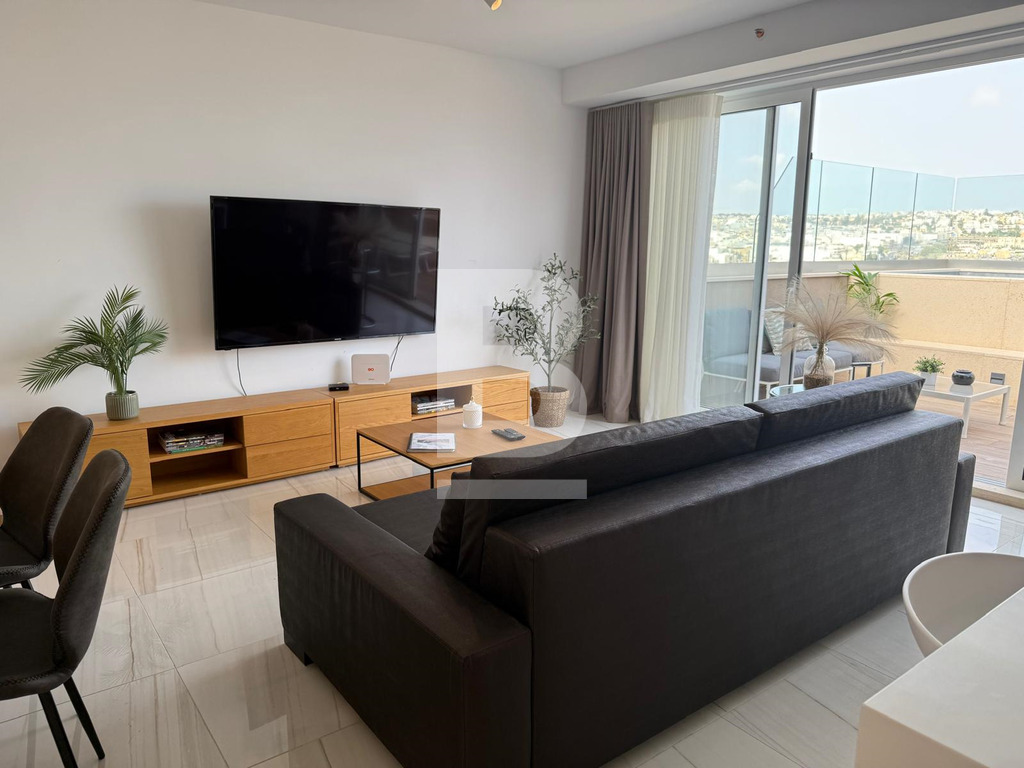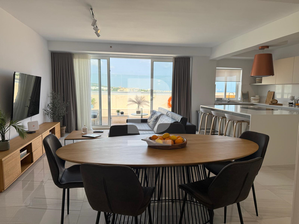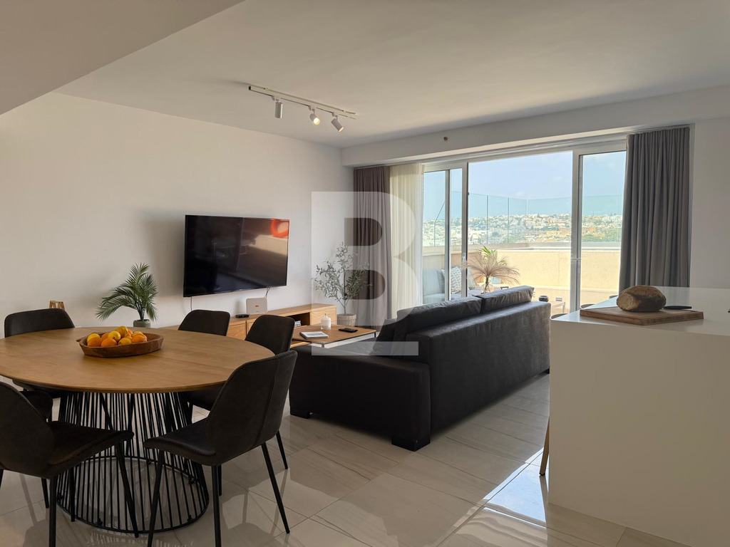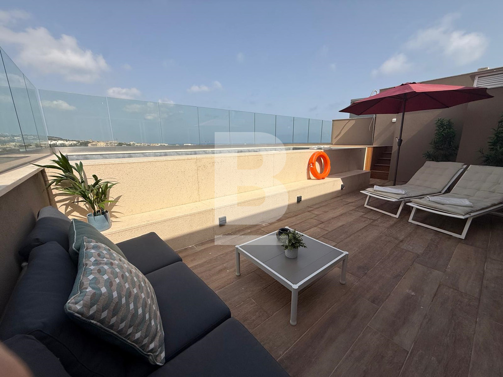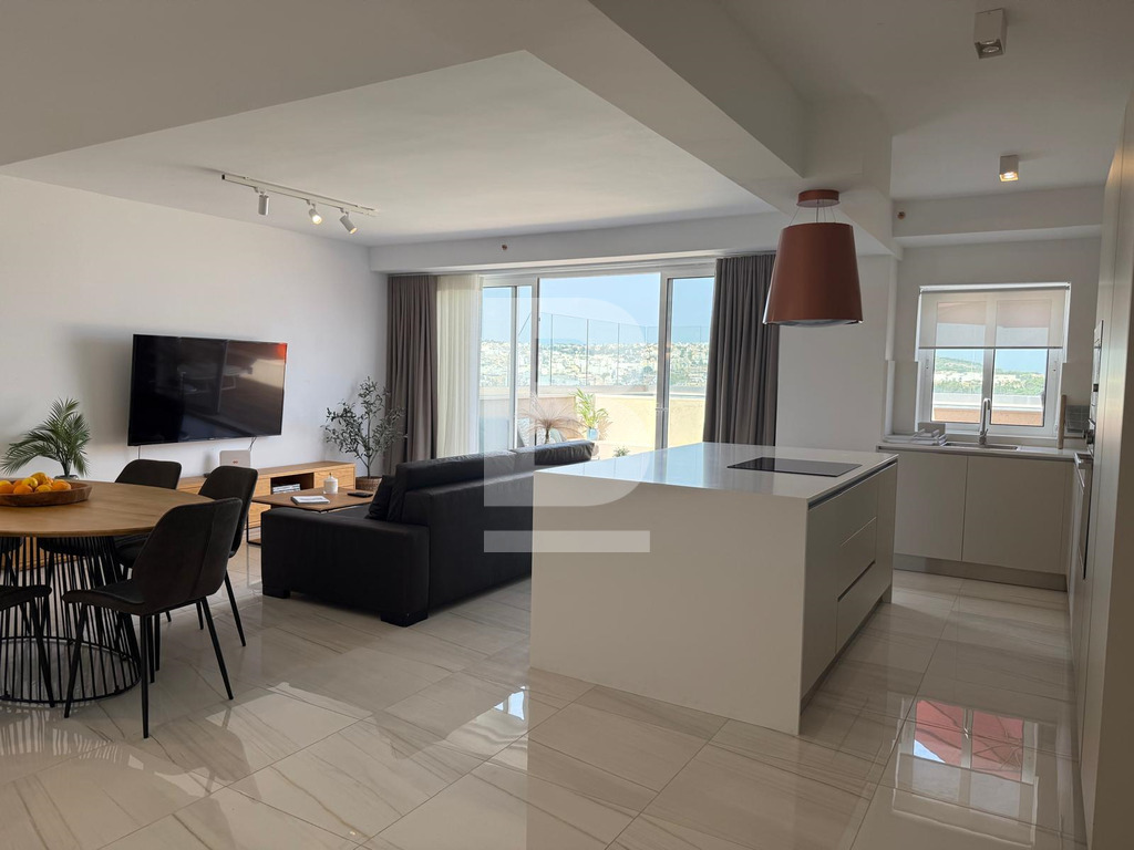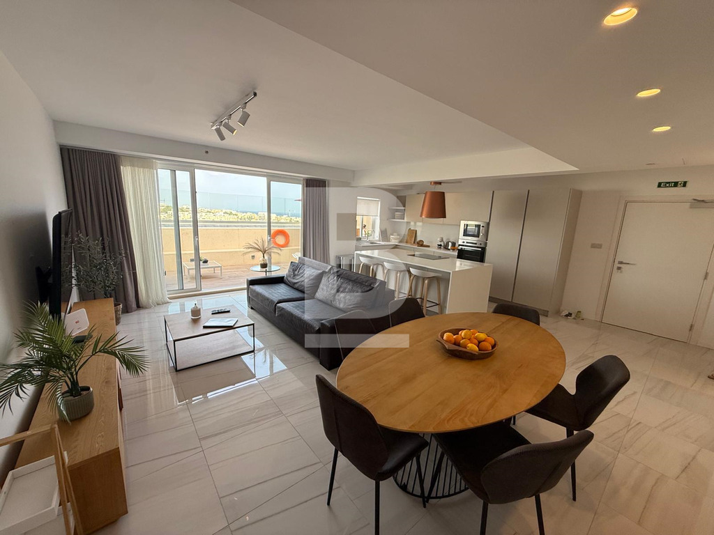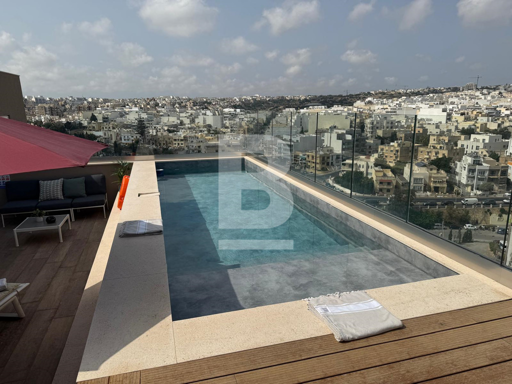 15th floor PENTHOUSE with pool, enjoying extensive sea and urban views. Part of a trendy new development just off St. George's Bay, a short walk to the major business hubs, all amenities, and entertainment facilities. The property is on a footprint of 170 sqm with a practical layout comprising an open-plan kitchen/ living/dining with a walkout onto a 41 sqm front terrace with a pool and deck, 3 bedrooms, en-suite shower room, bathroom, box room, and a balcony. A perfect option for those seeking a stylish home with views from all its spaces.