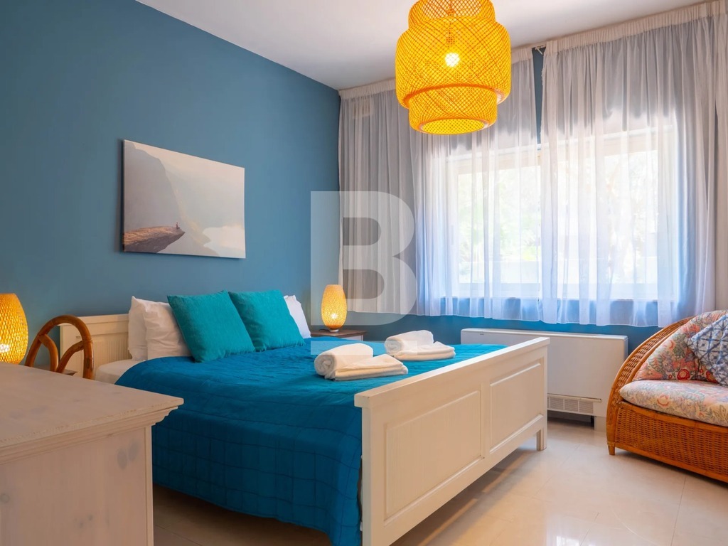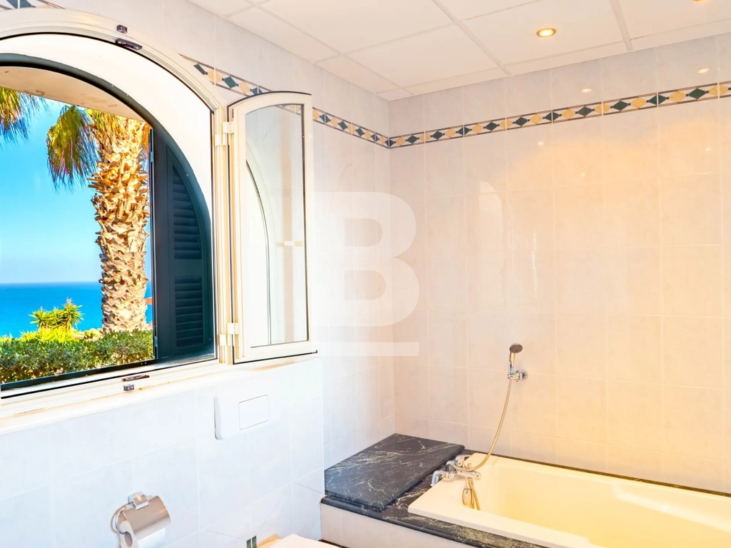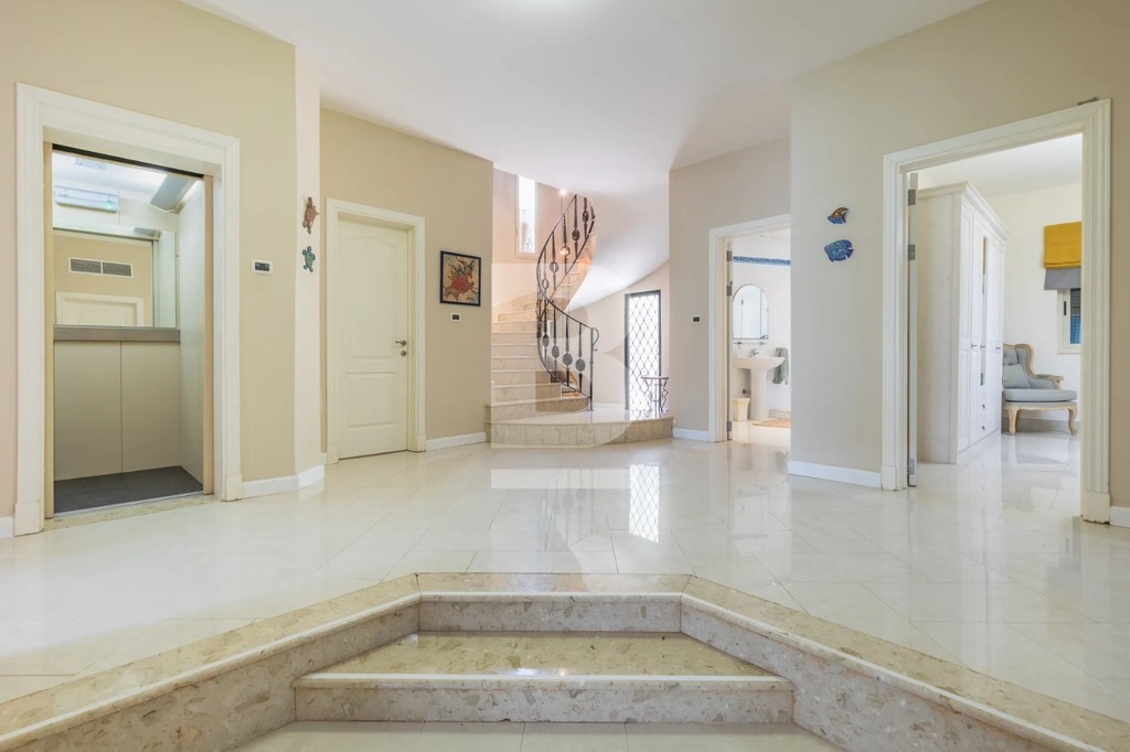Your private retreat by the sea in the prestigious Santa Maria Estate. Blending comfort with style, this six-bedroom villa accommodates up to 12 guests, many rooms offering stunning sea views to start each day in paradise. The villa features a bright living and dining area with panoramic Mediterranean views, a fully equipped kitchen, and plenty of space for relaxation. Entertainment includes a games room with pool table, a 4-person sauna, and a jacuzzi, with a lift providing easy access between floors. Outdoors, enjoy the highlight is a pool overlooking the sea, perfect for sunsets, plus a hammock and BBQ area for unforgettable alfresco moments. A quiet beach lies just few minute walk away.