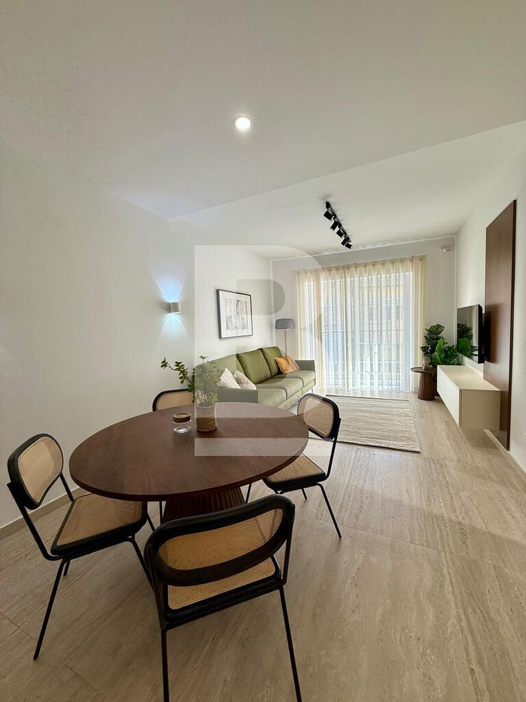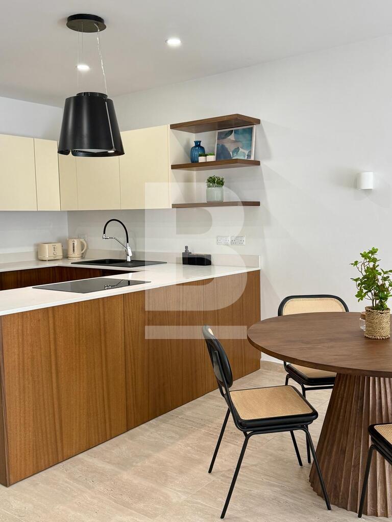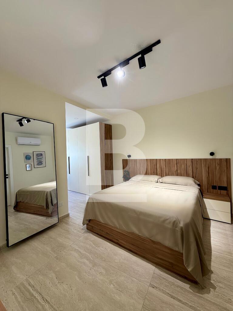 Highly finished 2-bedroom, 2-bathroom apartment in St Julian’s, just minutes from the seafront. The property features a bright open-plan kitchen, living and dining area leading onto a private terrace, two spacious double bedrooms (main with en-suite), and a modern main bathroom. Offered fully equipped and ready to move into.Ac throughout.