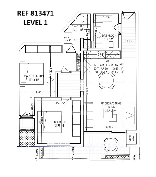 This new block of apartments in the process of construction will be finished to a very good specification list and forms part of an attractive apartment block having a large entrance lobby serviced by two indeoendent lifts and even a bicycle storage area. This 103 sqmt two bedroom apartment has a nice square layout and situated on the first floor and includes an ensuite bathroom for the master suite and common bathroom for the other bedroom. The apartment will be finished to a very good specification list and will include bathrooms and doors.